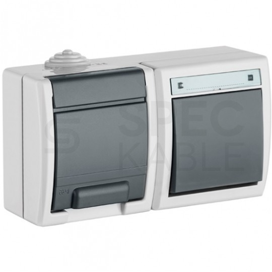 Osprzęt AQUANT™ oferowany jest standardowo w kolorze szarym (RAL 7035+7034). Obudowy gniazd i łączników wykonane są z materiałów odpornych na promieniowanie UV, co zapewnia stabilność wyglądu w warunkach zewnętrznych.