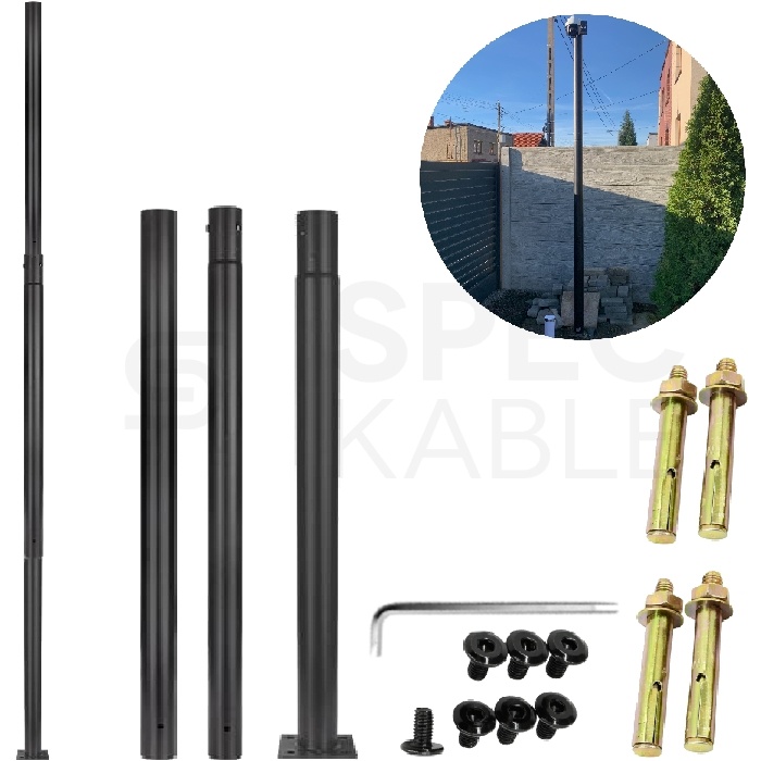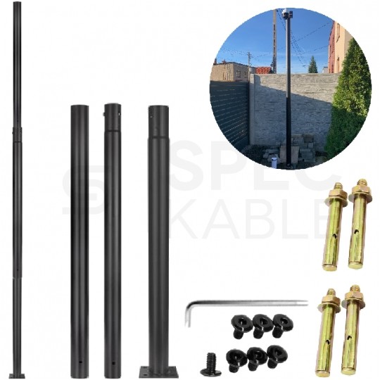 Słup oświetleniowy, maszt do kamer fi: 60mm 3m podstawa 200x200x8mm czarny MASTER LED