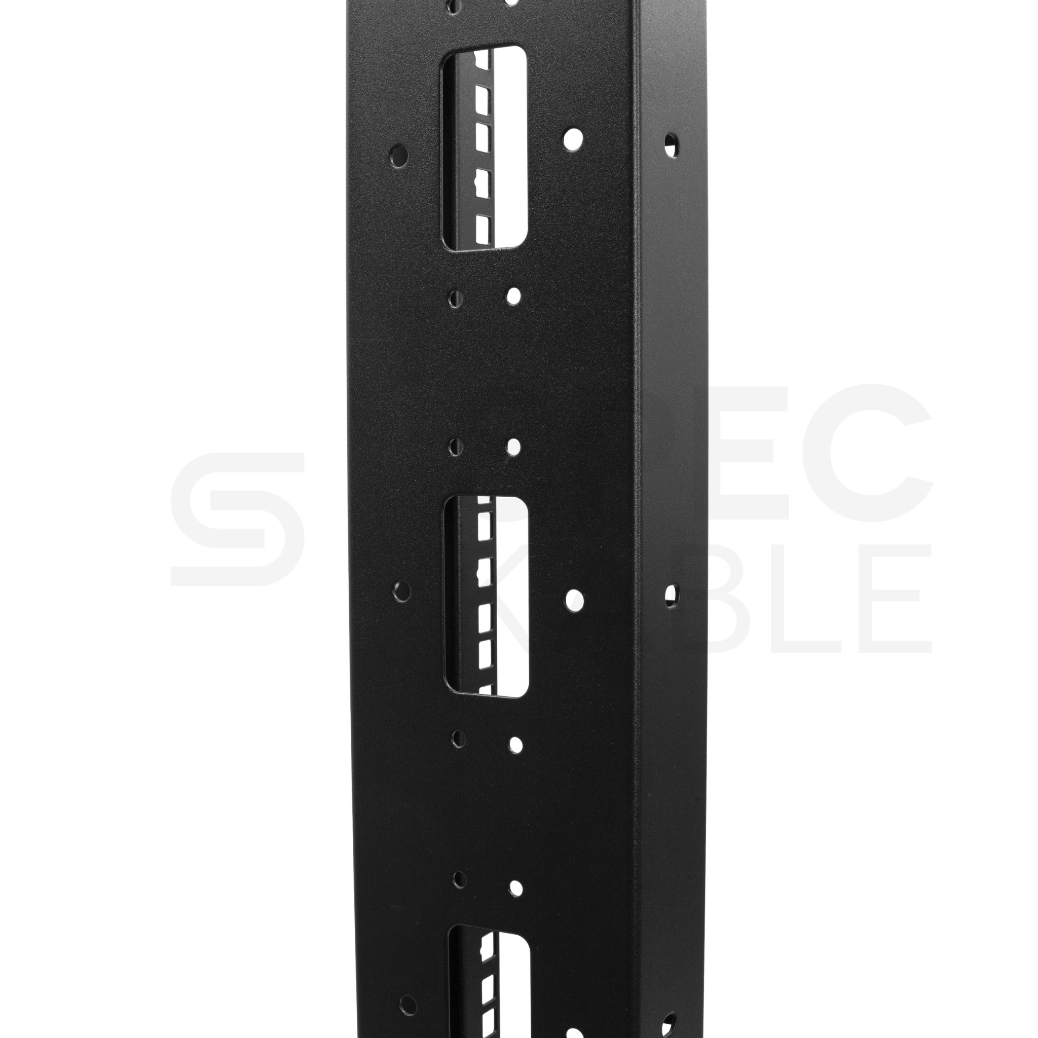 Konstrukcja o nośności aż 600 kg umożliwia instalację nawet najbardziej masywnych urządzeń, a wytrzymałe szyny pionowe, stabilne nóżki oraz dodatkowo usztywniona podstawa ramy gwarantują pełną stabilność i ochronę.