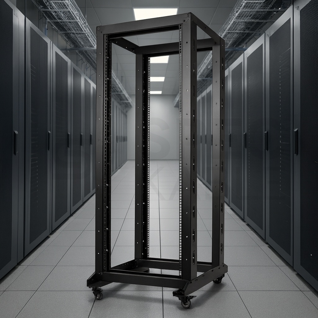 Szafa stojąca OPEN RACK 19" 18U 600x800mm Stojak do serwerów i magazynów energii Otwarta Czarna NEKU
