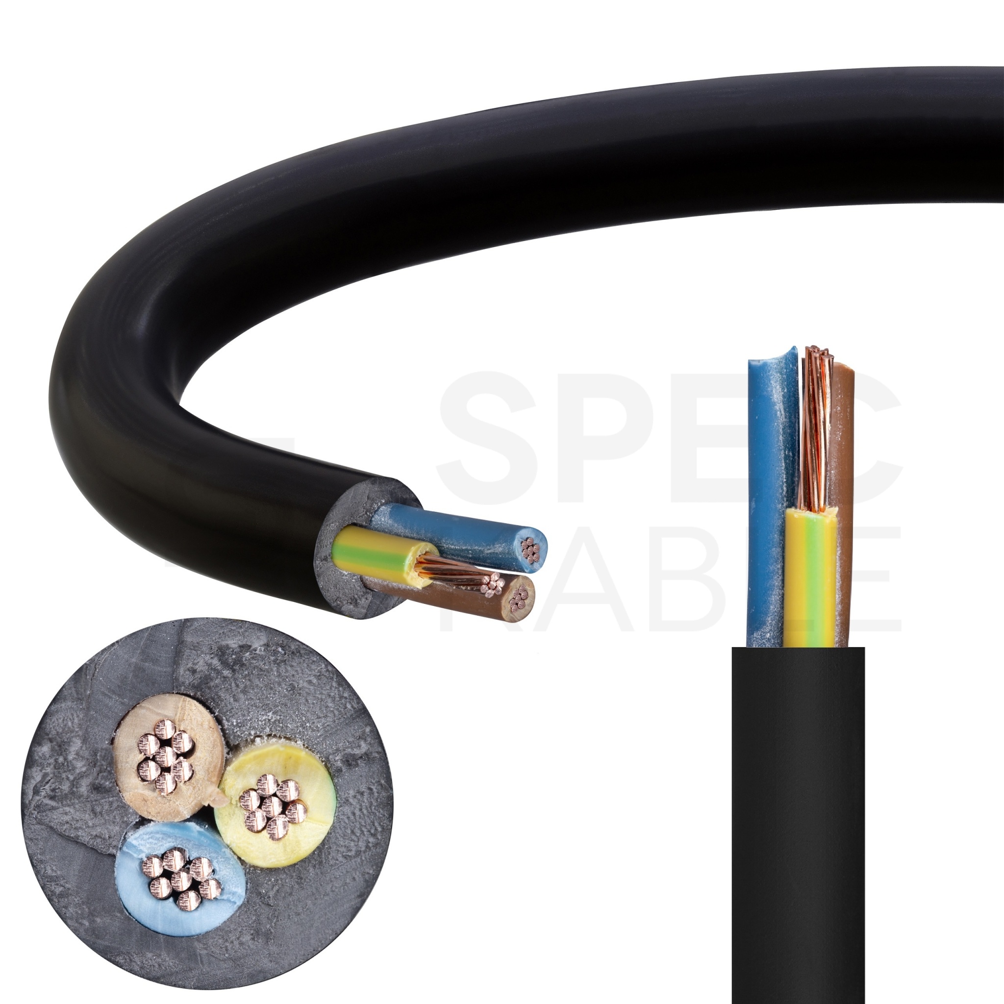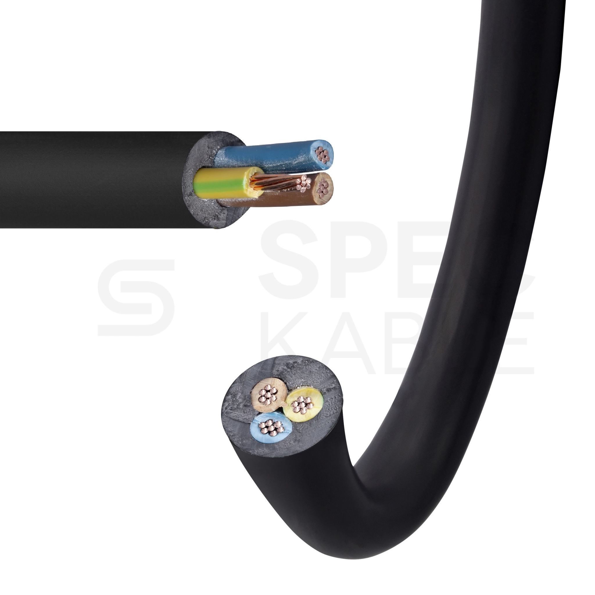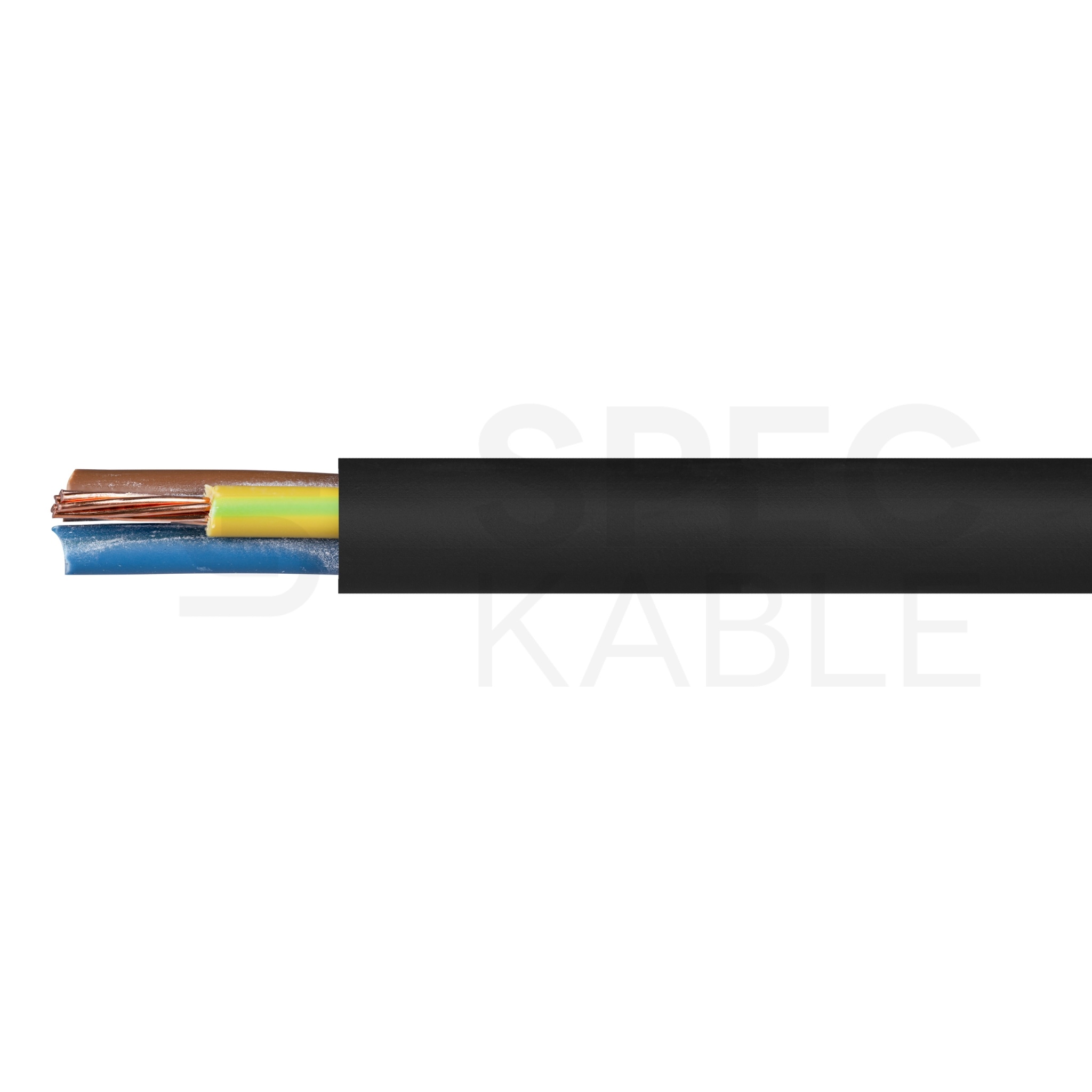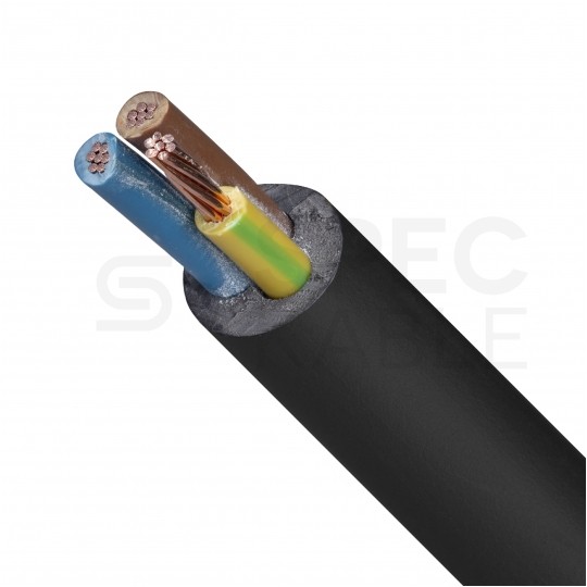 Kabel (K) elektroenergetyczny z żyłami miedzianymi wielodrutowymi (linka sztywna) (L) o izolacji z polichlorku winylu PVC (Y) i powłoce z polichlorku winylu PVC (Y), z żyłą ochronną (żo), na napięcie znamionowe 0,6/1kV, klasa reakcji na ogień CPR: Eca.