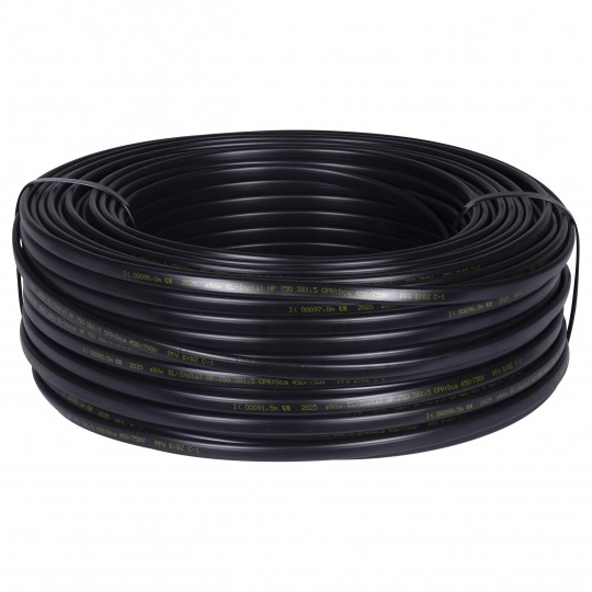 Samogasnący i uniepalniony odpowiednik kabla YDYp w kolorze czarnym.