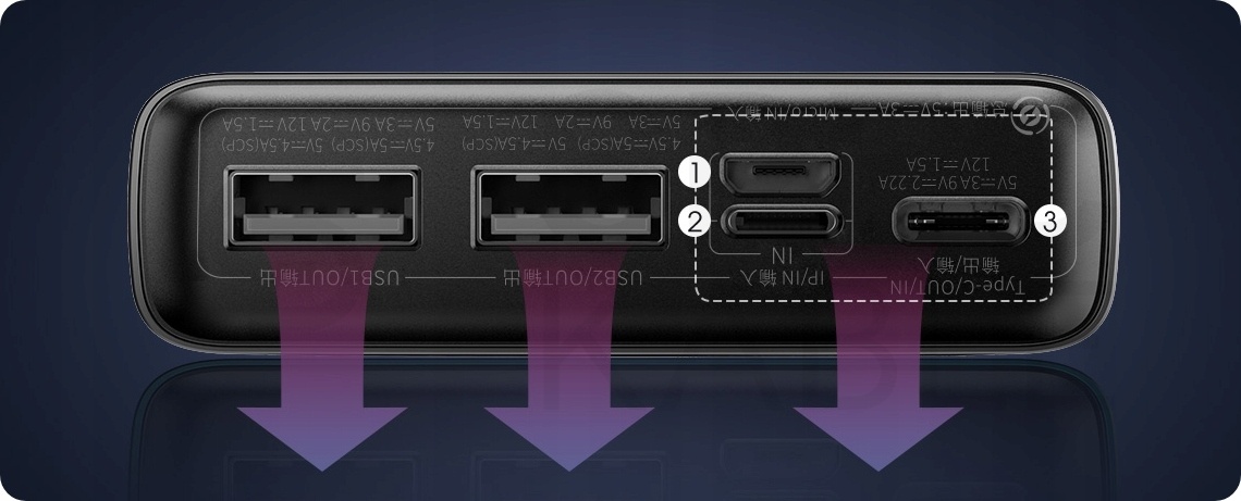 Niezależnie od tego, czy wybierzesz szybki port USB Typu-C, niezawodne MicroUSB, czy Lightning, nasz Power Bank zawsze efektywnie i szybko odzyska swoją energię.