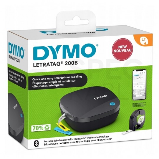 Drukarka DYMO LetraTag 200B wyposażona jest w funkcję Bluetooth, która umożliwia automatyczne połączenie się z telefonem lub tabletem i za pomocą intuicyjnej aplikacji LetraTag® Connect App stworzymy etykietę idealną pod swoje potrzeby.
