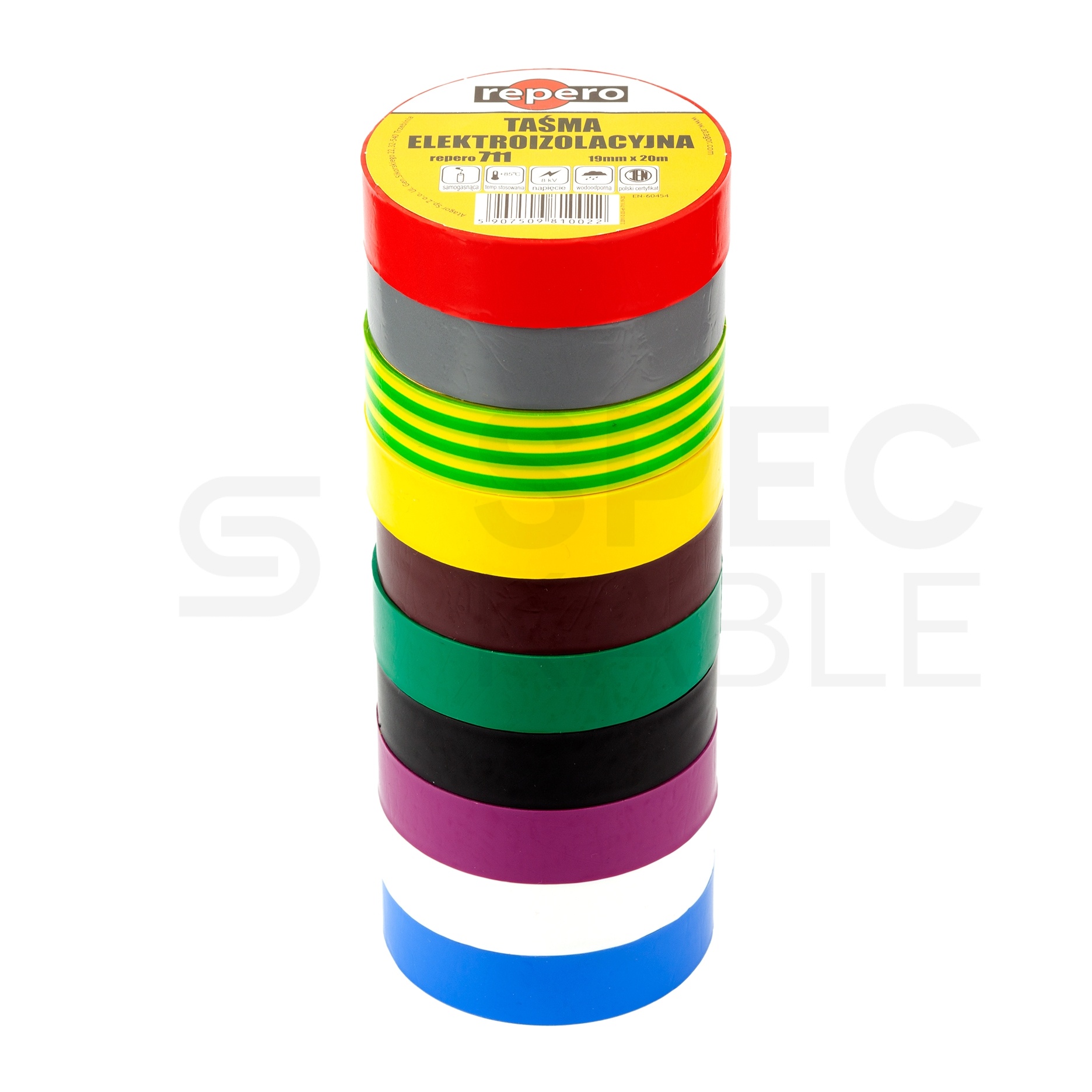 Taśma izolacyjna PVC Repero 711 o wymiarach 15 mm x 10 m to elastyczne i trwałe rozwiązanie przeznaczone do profesjonalnej izolacji elektrycznej.