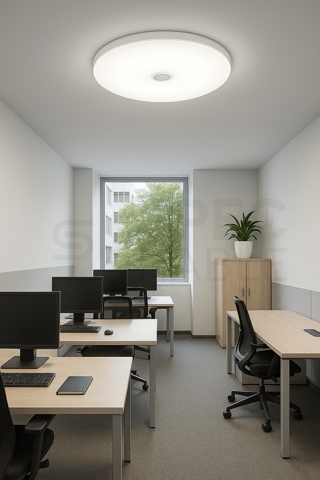 Dzięki klasie szczelności IP42, zasilaniu 230 V AC i kompaktowym wymiarom 230×65 mm sprawdza się w biurach, korytarzach i przestrzeniach komercyjnych oraz domowych.