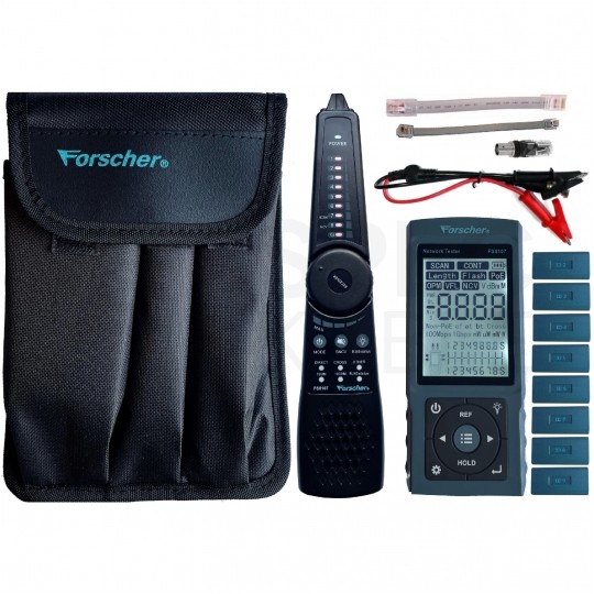 Precyzyjny szukacz par tester LAN FS 8107 marki FORSCHER to zaawansowane urządzenie łączące funkcje lokalizatora przewodów, testera sieci LAN oraz miernika mocy optycznej.