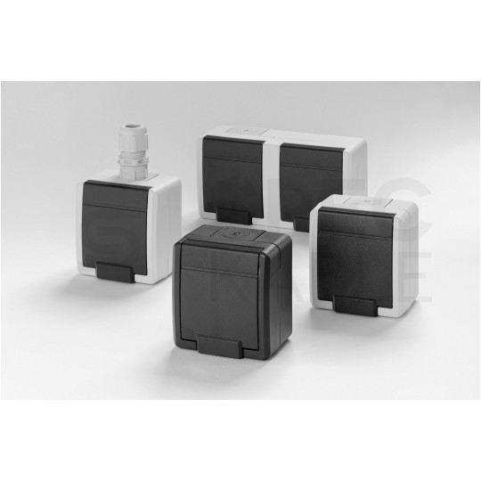 Łącznik schodowy AQUANT™ 2K to hermetyczny łącznik natynkowy przeznaczony do sterowania oświetleniem z dwóch różnych miejsc, zapewniający wygodę obsługi oraz bezpieczeństwo użytkowania w wymagających warunkach środowiskowych.
