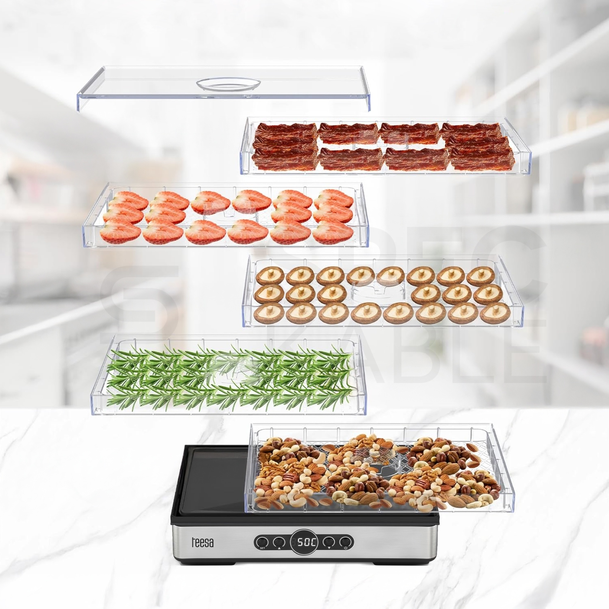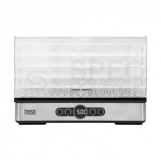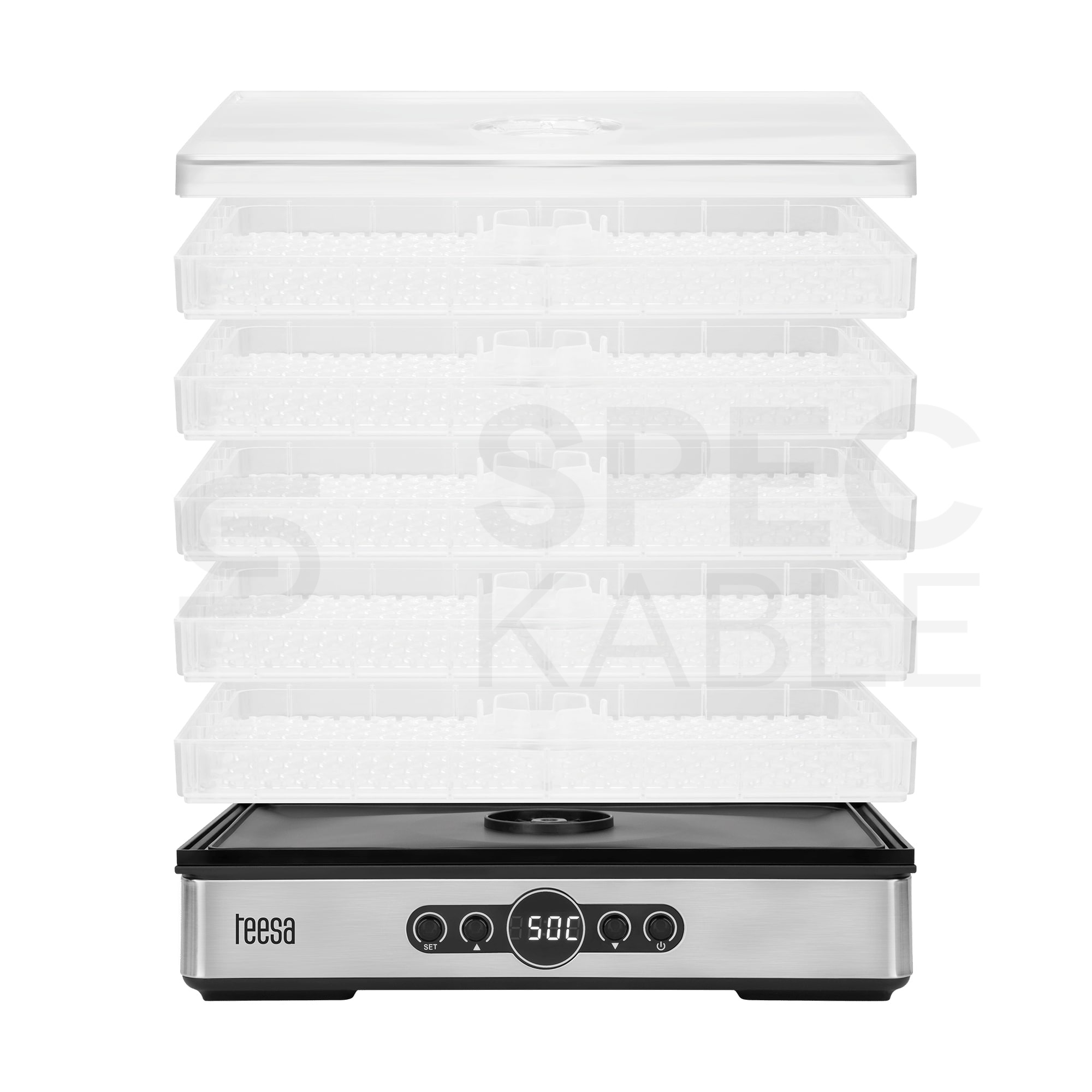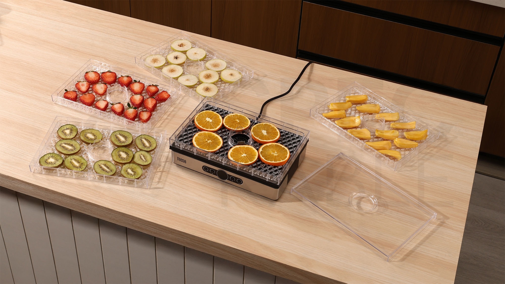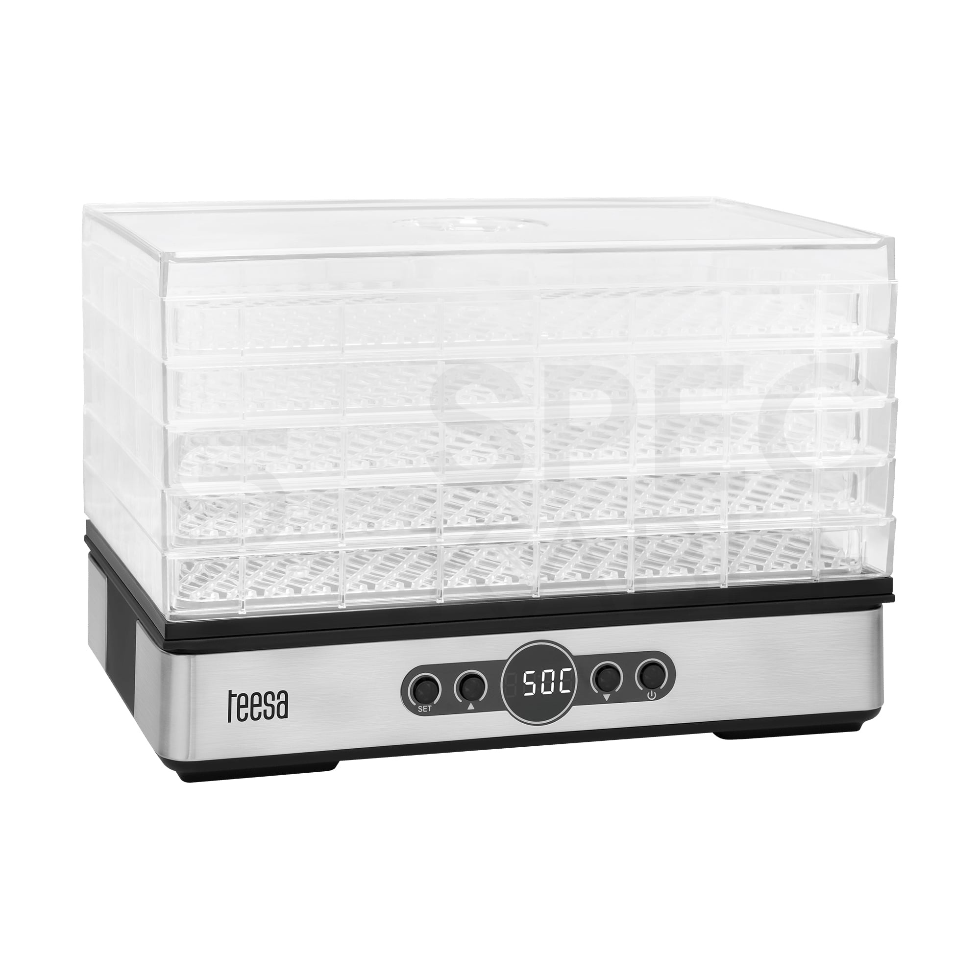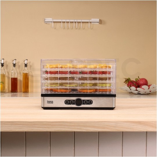 Suszarka Teesa oferuje aż 5 dużych, przezroczystych sit, które pomieszczą łącznie do 1,7 kg produktów.