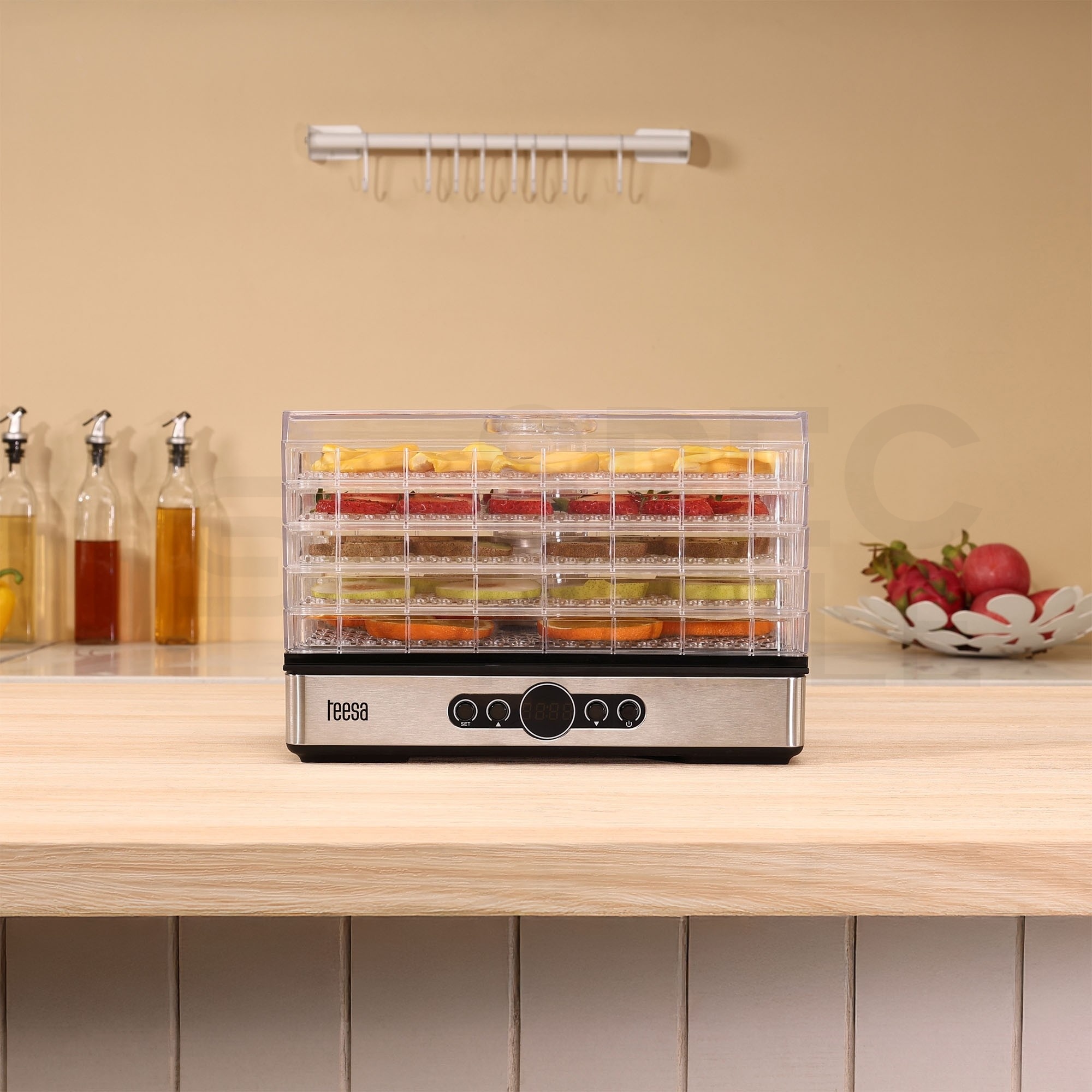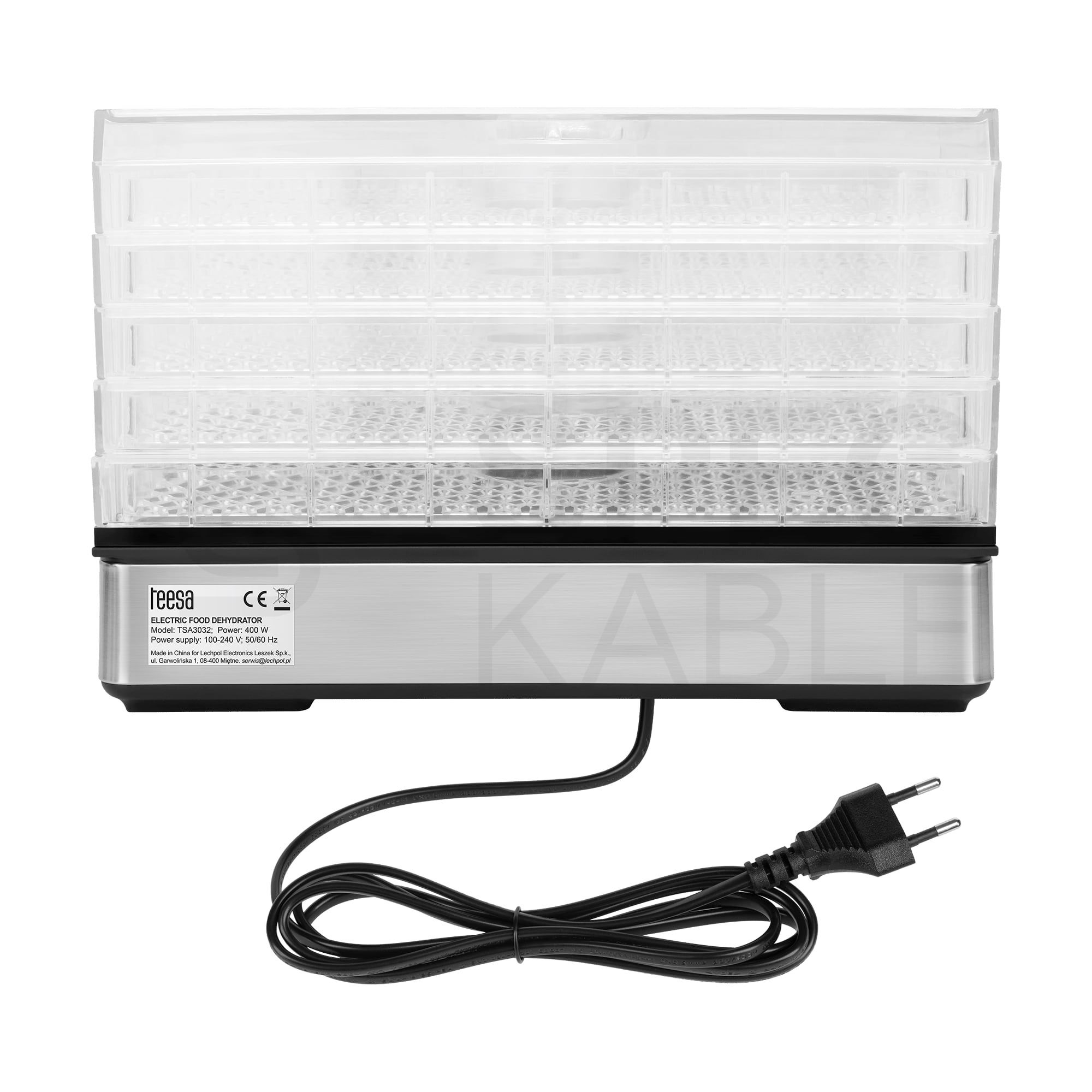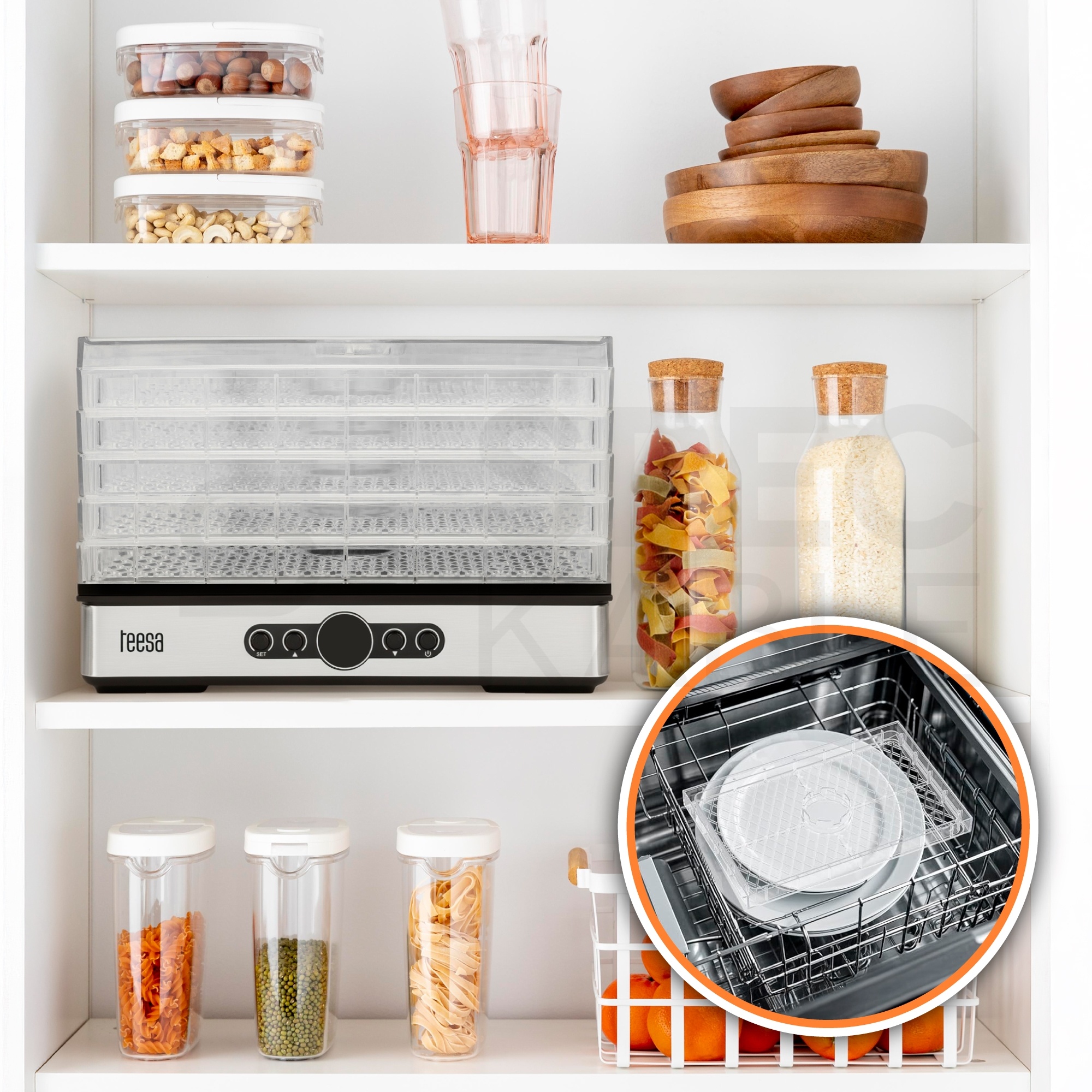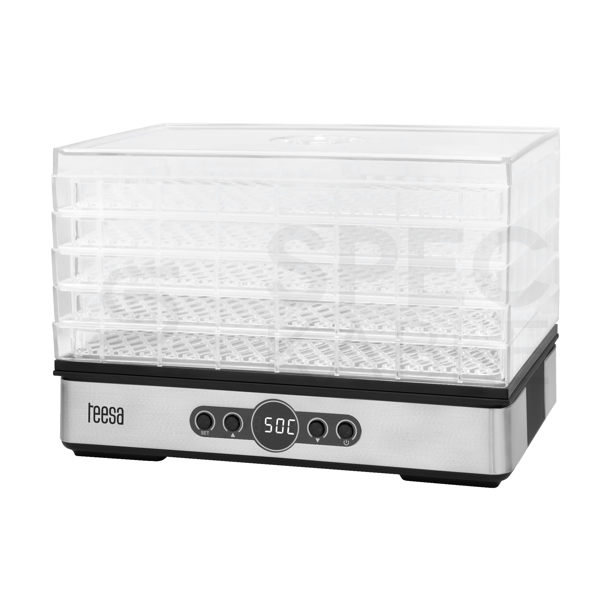 Suszarka Teesa oferuje aż 5 dużych, przezroczystych sit, które pomieszczą łącznie do 1,7 kg produktów.