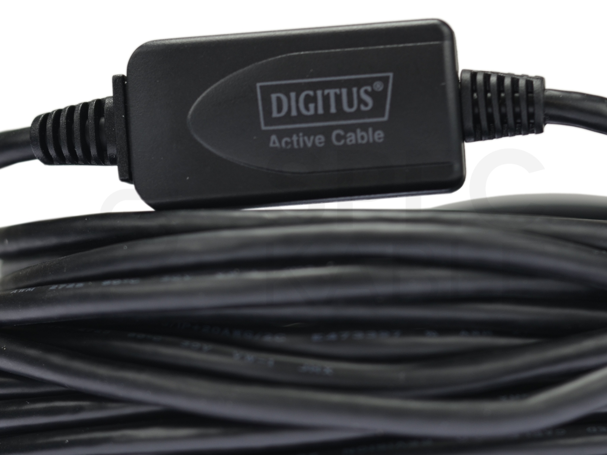 Przedłużacz nie wymaga zewnętrznego zasilania, nie ma potrzeby podłączania zasilacza. Wbudowana płytka elektroniczna odpowiednio moduluje i wzmacnia sygnał. Zastosowanie przedłużacza aktywnego pozwala ominąć problem limitu odległości działania standardu USB - do 5m