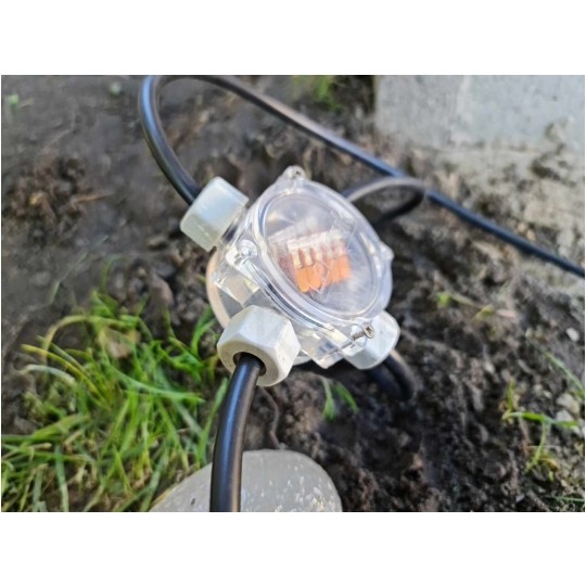 Puszka instalacyjna z 4 dławikami PG11 (4-9mm) natynkowa / gruntowa 90x90x37mm hermetyczna IP68 transparentna