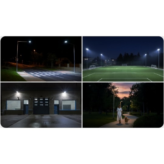 Moc 100 W oraz strumień światła wynoszący 13500 lm sprawiają, że jest to niezwykle wydajne rozwiązanie na rynku tego typu oświetleń. Solidna konstrukcja z aluminium zapewnia wytrzymałość, a klasa szczelności IP65 świadczy o jej odporności na warunki atmosferyczne.