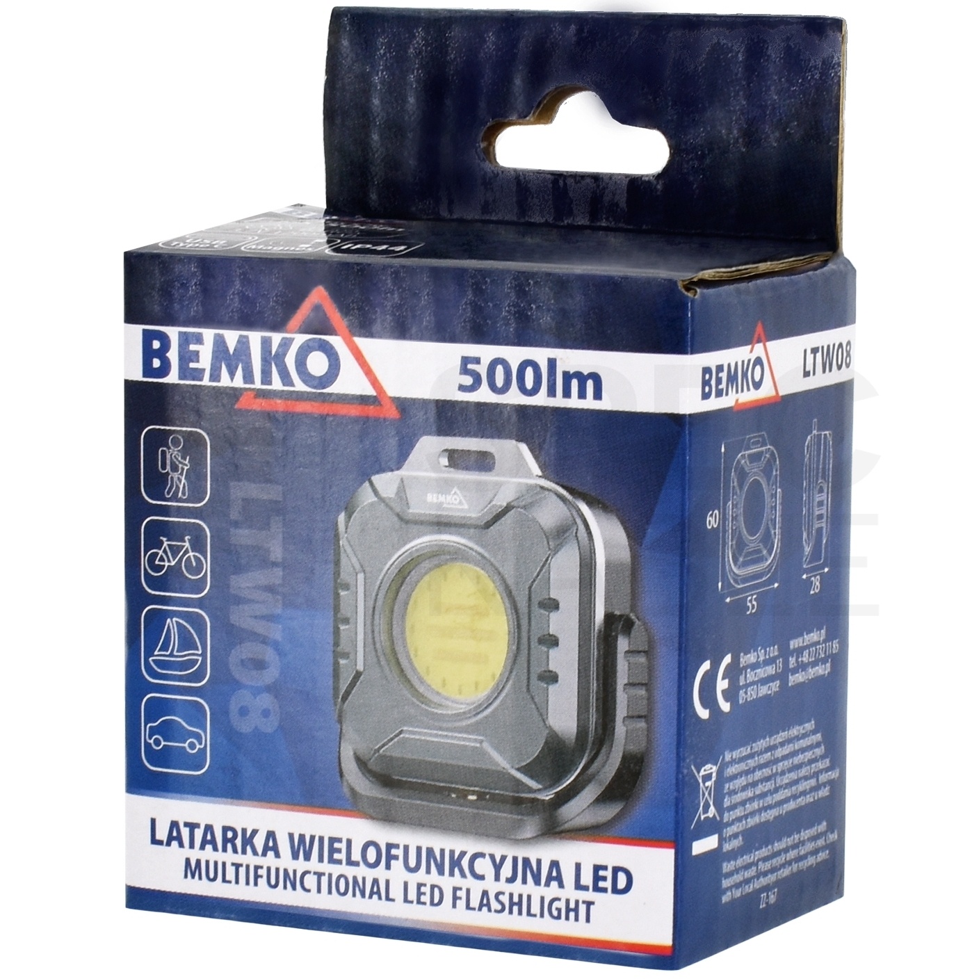 Latarka wielofunkcyjna LED BEMKO C49-LTW08 o mocy 5,7 W i strumieniu świetlnym 500 lm to kompaktowe, przenośne źródło światła do zastosowań profesjonalnych i codziennych.