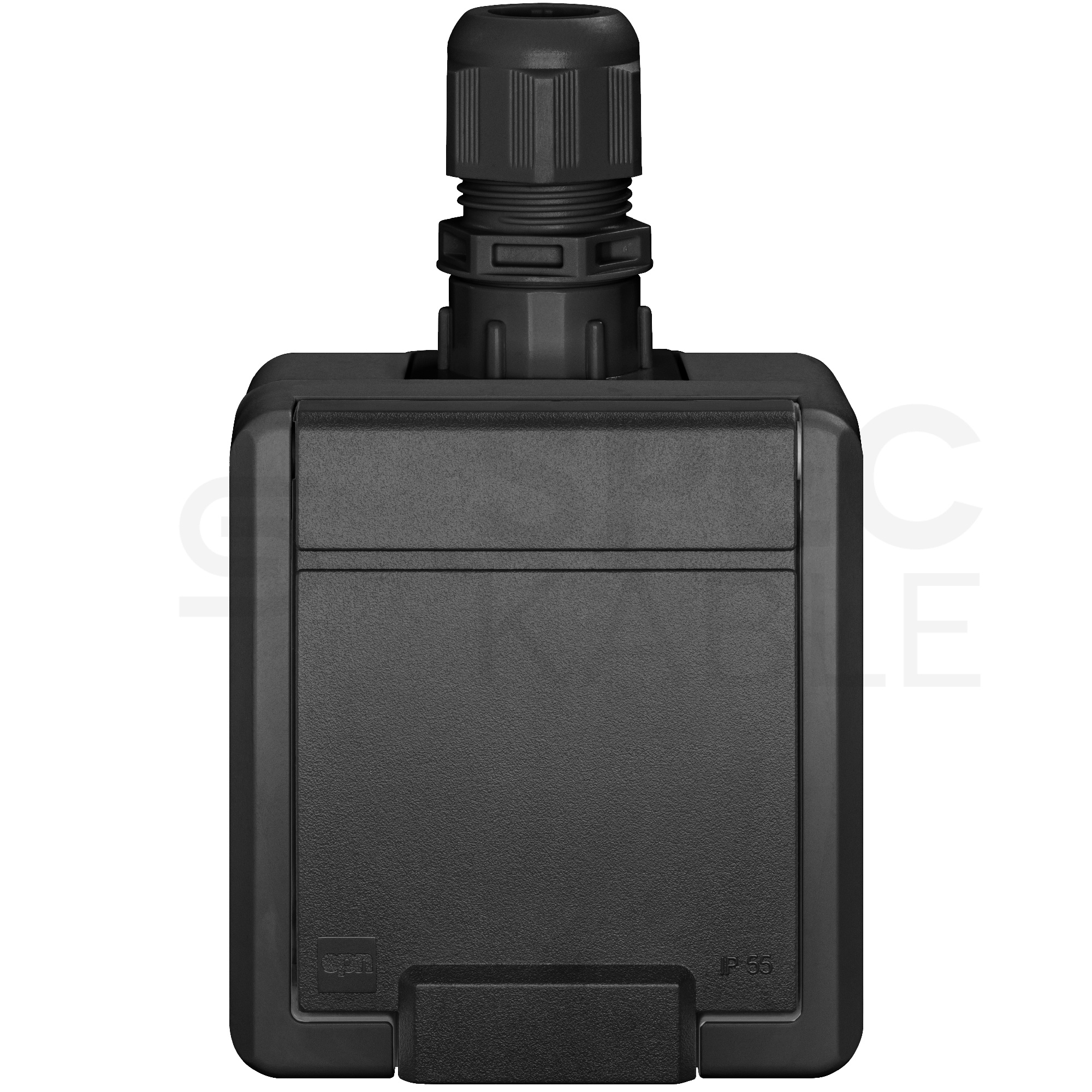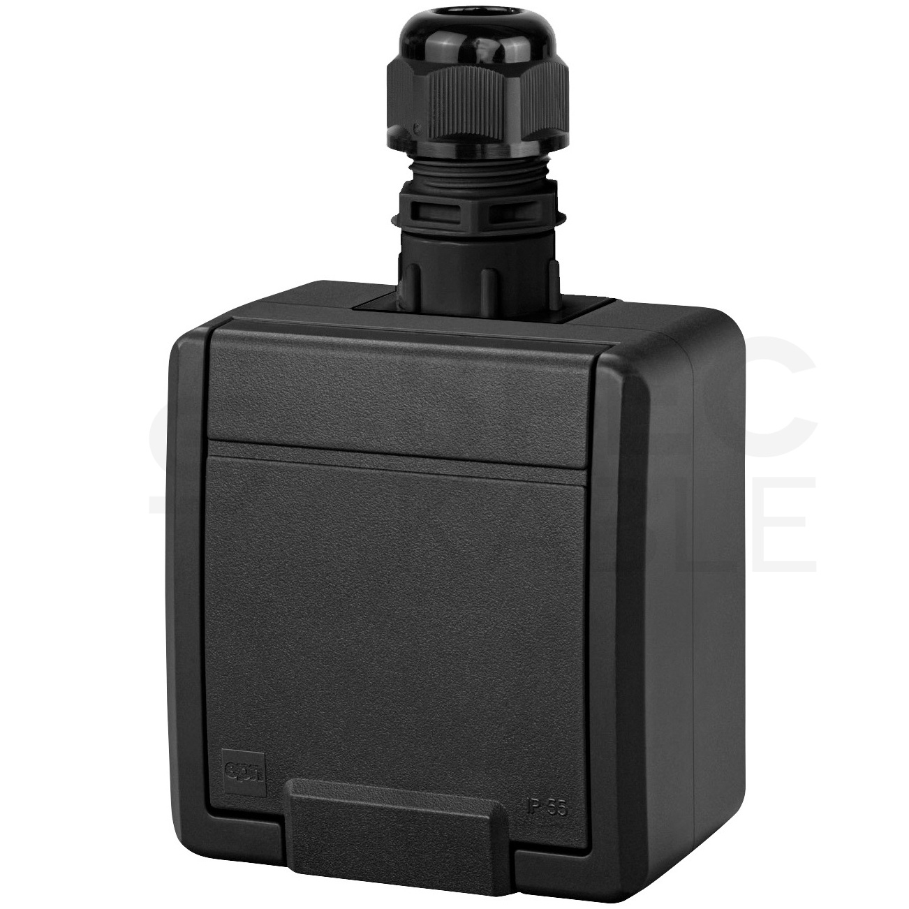 Pojedyncze gniazdo natynkowe AQUANT™ 2K IP65 zapewnia niezawodne zasilanie w wymagających warunkach, dzięki hermetycznej konstrukcji odpornej na wodę, pył oraz promieniowanie UV.