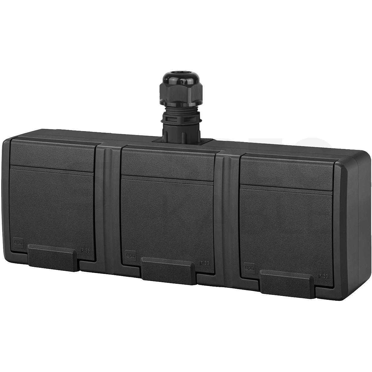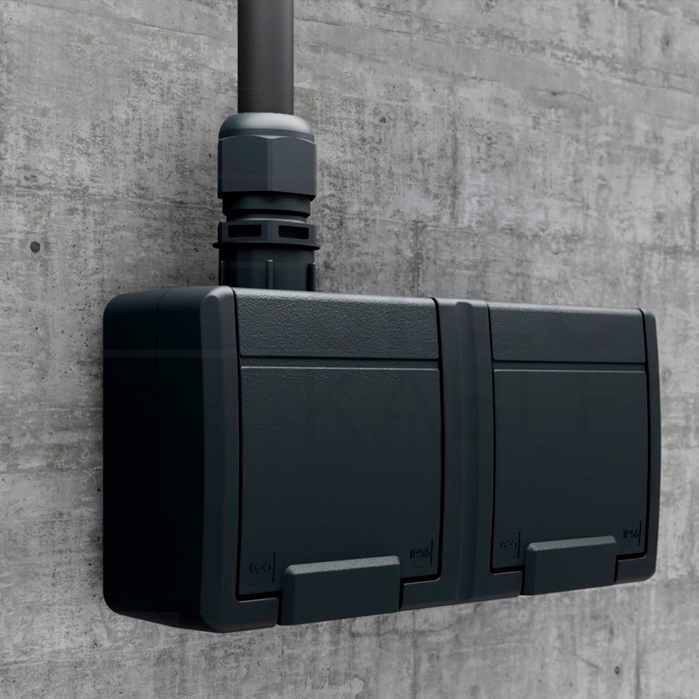 Potrójne gniazdo natynkowe AQUANT™ 2K IP65 zapewnia niezawodne zasilanie w wymagających warunkach, dzięki hermetycznej konstrukcji odpornej na wodę, pył oraz promieniowanie UV.