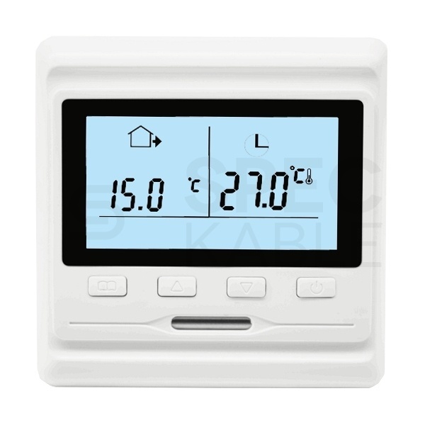 Programowalny regulator temperatury o nowoczesnej konstrukcji przeznaczony do sterowania systemem ogrzewania podłogowego. Oferuje tryb programowalny i ręczny, z możliwością ustawienia harmonogramu tygodniowego w konfiguracjach 5+2, 6+1 lub 7 dni.