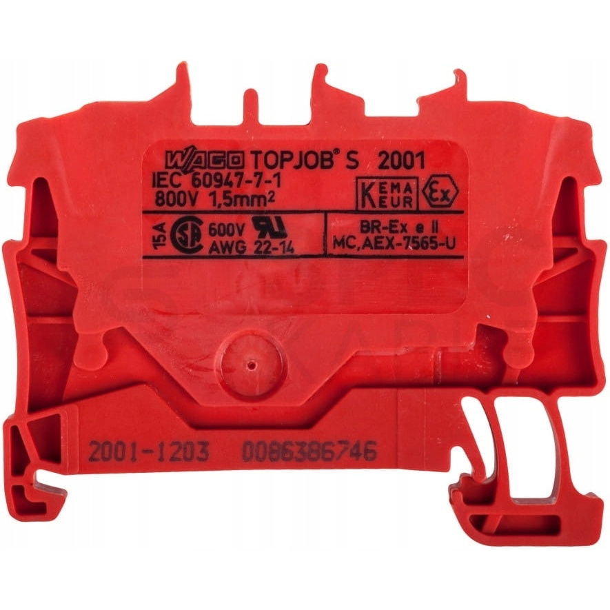 WAGO TOPJOBS 2001-1203 Złączka szynowa 2-przewodowa 1,5mm2 na szynę TH35 czerwona