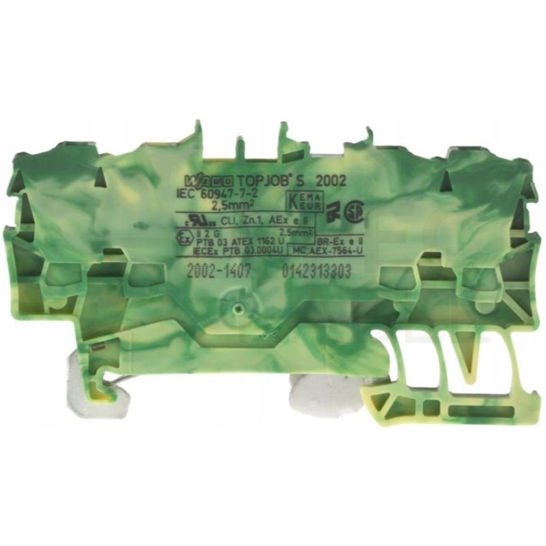 WAGO TOPJOBS 2002-1407 Złączka szynowa 4-przewodowa 2,5mm2 na szynę TH35 żółto-zielona