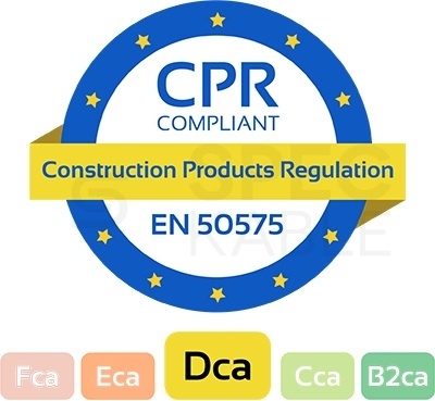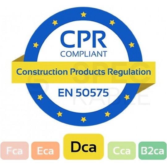 Przewód w izolacji zapalnej przy średniej ilości energii cieplnej, spełniającej kryteria euroklasy Dca zgodnie z normą EN 50575:2014 + A1:2016 oraz z Rozporządzeniem Parlamentu Europejskiego i Rady (UE) nr 305/2011 z dnia 9 marca 2011 r. (Construction Products Regulation lub CPR).