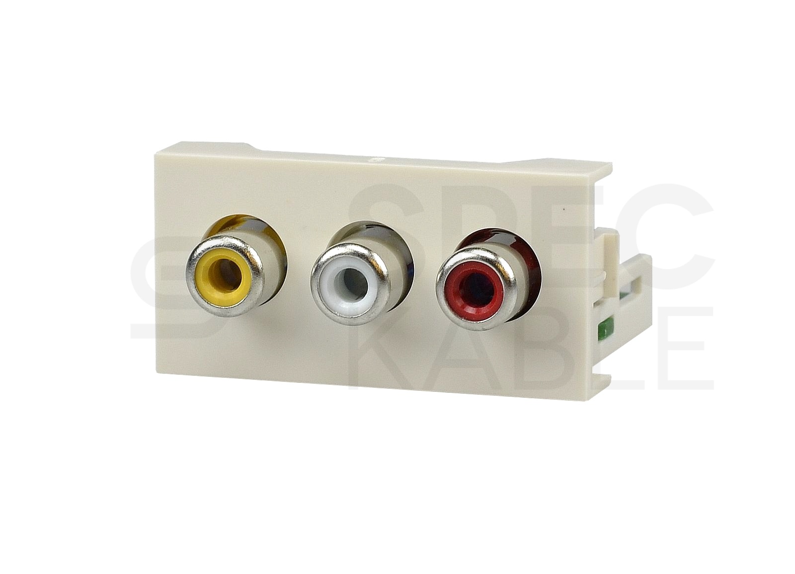 Gniazdo 3x RCA szybkozłącze moduł 1M 22,5x45 biały Mediabox