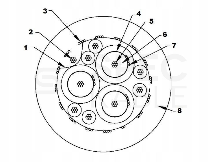 Ekranowanie: | wielowarstowe: oplot z drutów (16 x 3 włókna) oraz folia aluminiowa wraz z żyłą uziemiającą + dodatkowy indywidualny ekran z foli aluminiowej wraz z żyłą uziemiającą na przewodach współosiowych |