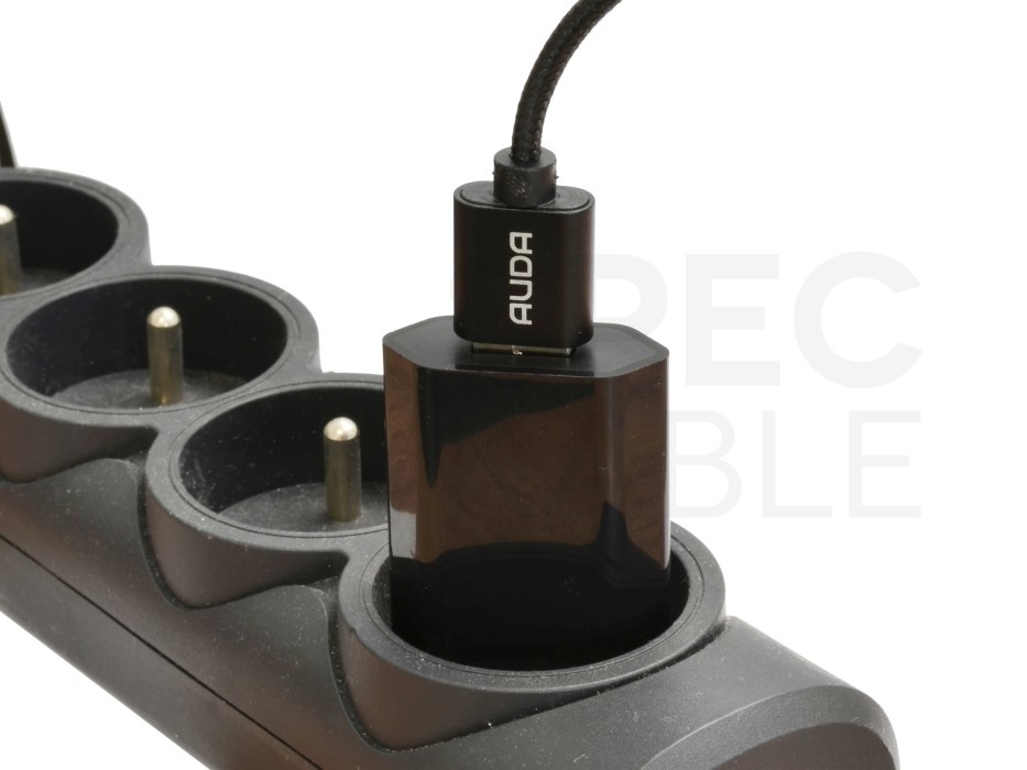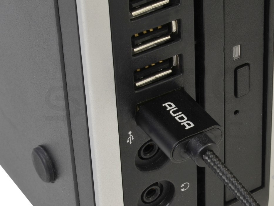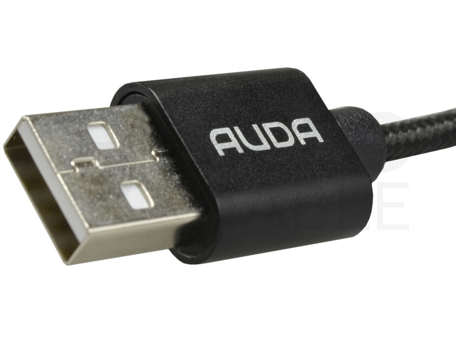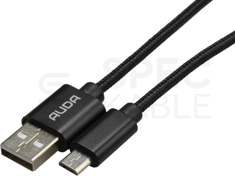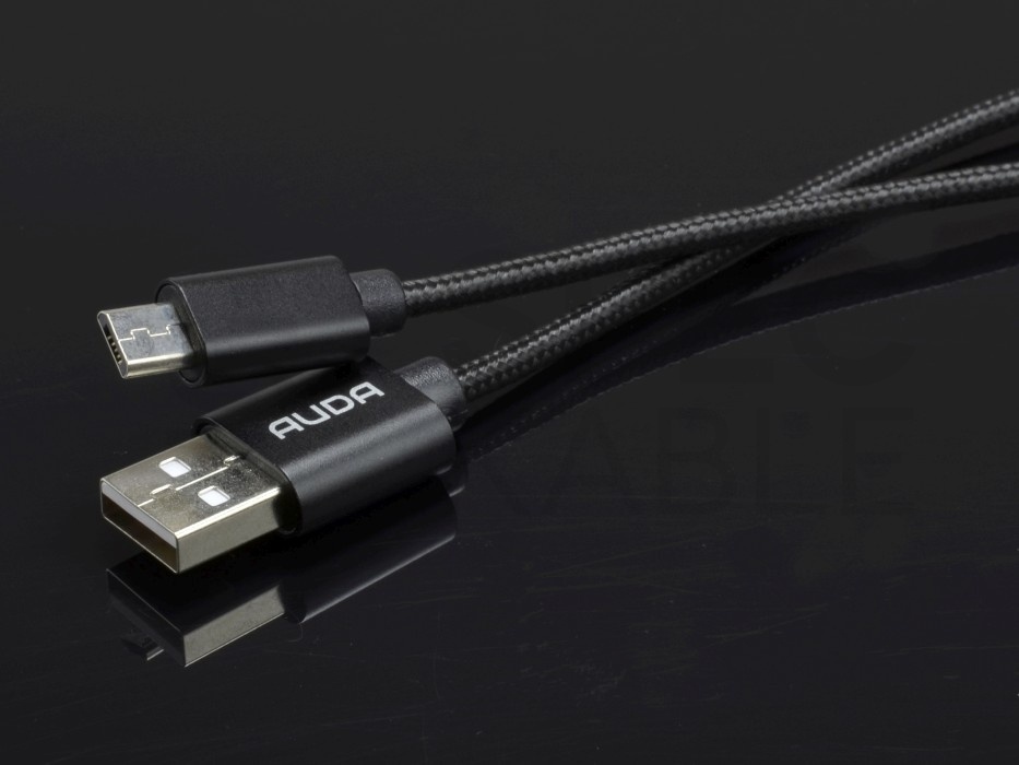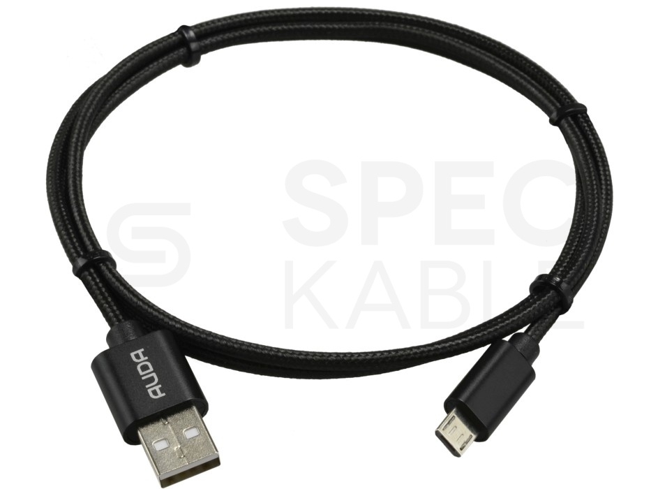 Przewód połączeniowy marki AUDA, umożliwiający podłączenie sprzętu wyposażonego w złącza USB-A do urządzeń z portem microUSB.