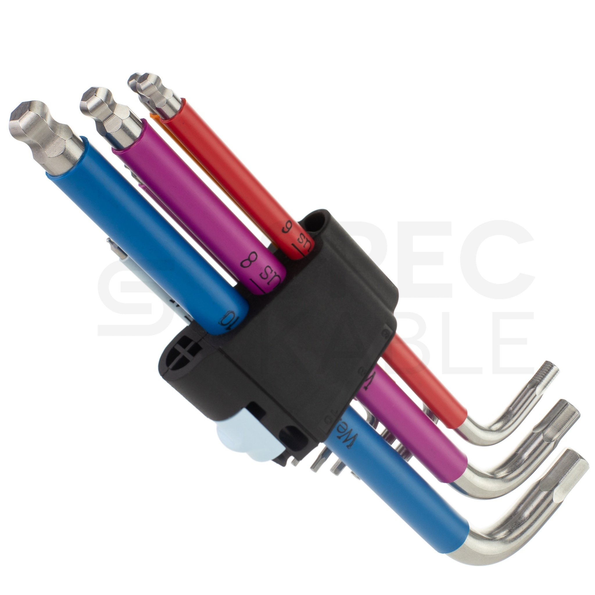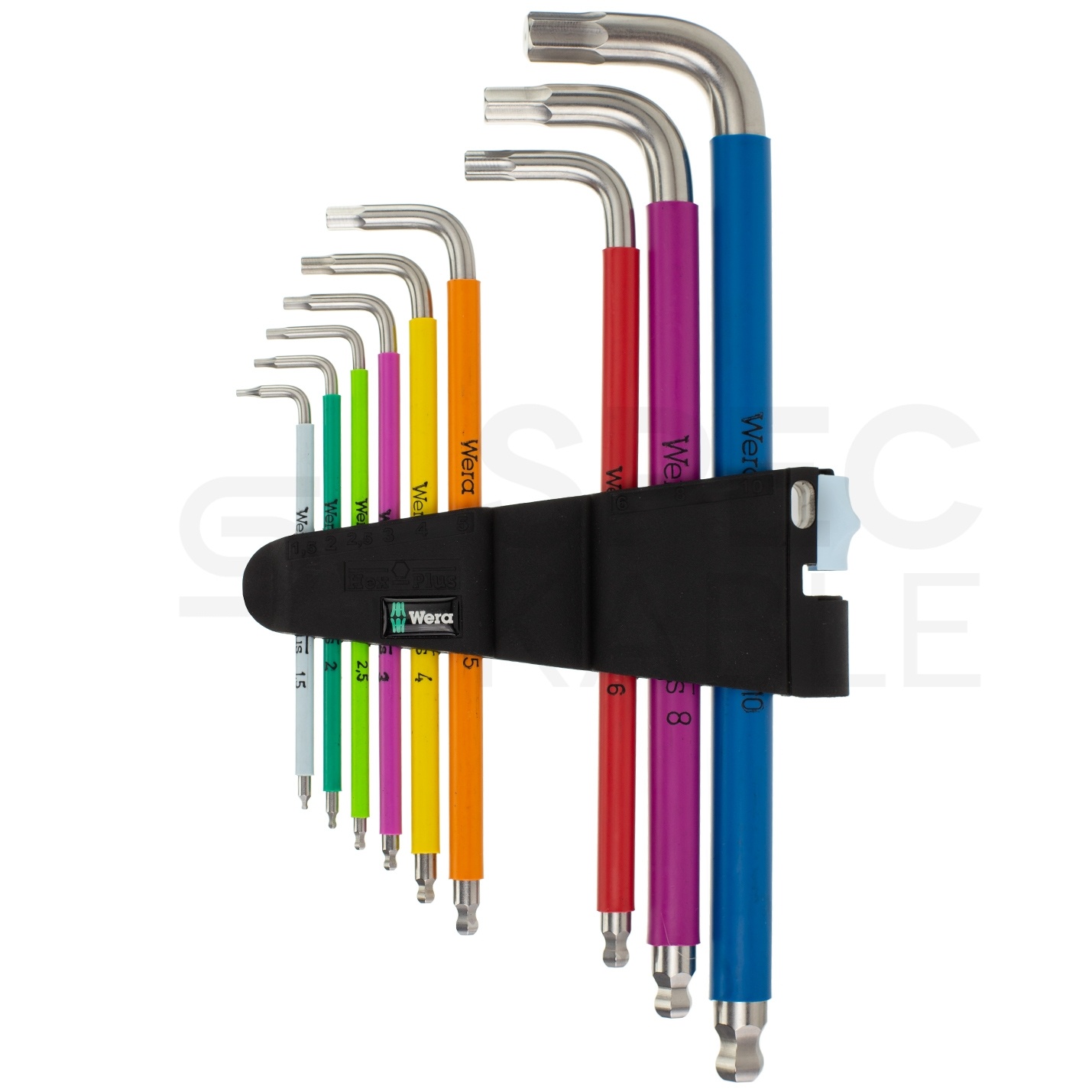 Z identyfikacją kolorystyczną i komfortową nakładką, zapewniającą wygodny uchwyt dla dłoni. Zastosowany profil Hex-Plus, zapewnia większą powierzchnię styku w gnieździe oraz, co za tym idzie, minimalizuje efekt działania karbu i ryzyko odkształcenia gniazda śruby. Narzędzia zostały umieszczone w wygodnym uchwycie z odpornego na zużycie materiału gwarantującym pewne mocowanie kluczy trzpieniowych i jednocześnie łatwe ich wyjmowanie.