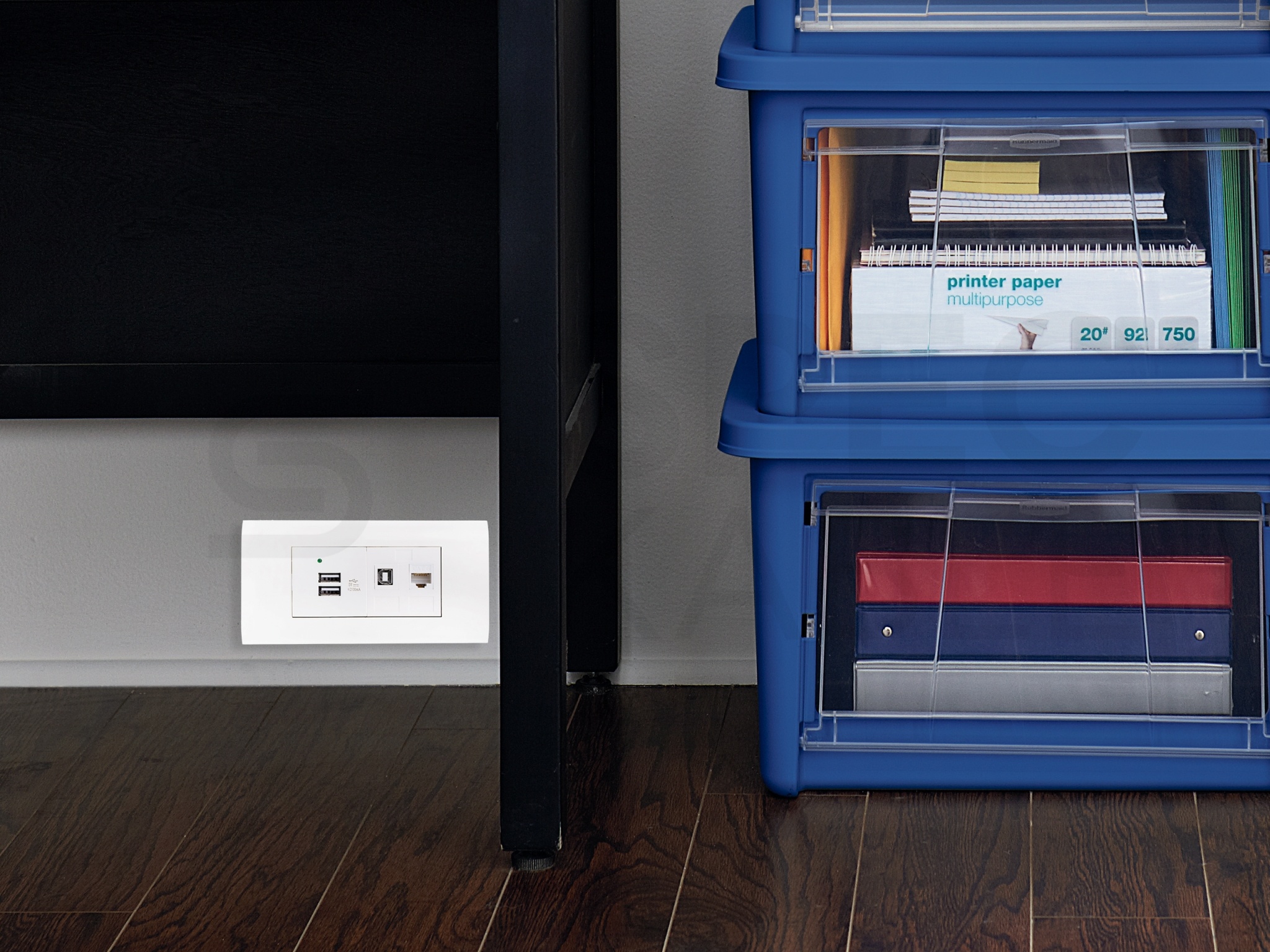 Moduły Mediabox przeznaczone są do montażu w ramkach wyposażonych w supporty, puszkach podłogowych, kolumnach wysuwanych z blatu oraz listwach i korytach naściennych przystosowanych do montażu osprzętu modułowego 45x45mm. Uniwersalny rozmiar modułów systemu Mediabox (22,5x45mm lub 45x45mm) pozwala na stosowanie ich we wszelkich systemach modułowych m.in. Legrand Mosaic, Kontakt Simon K45 oraz innych opartych na standardzie 45x45mm.