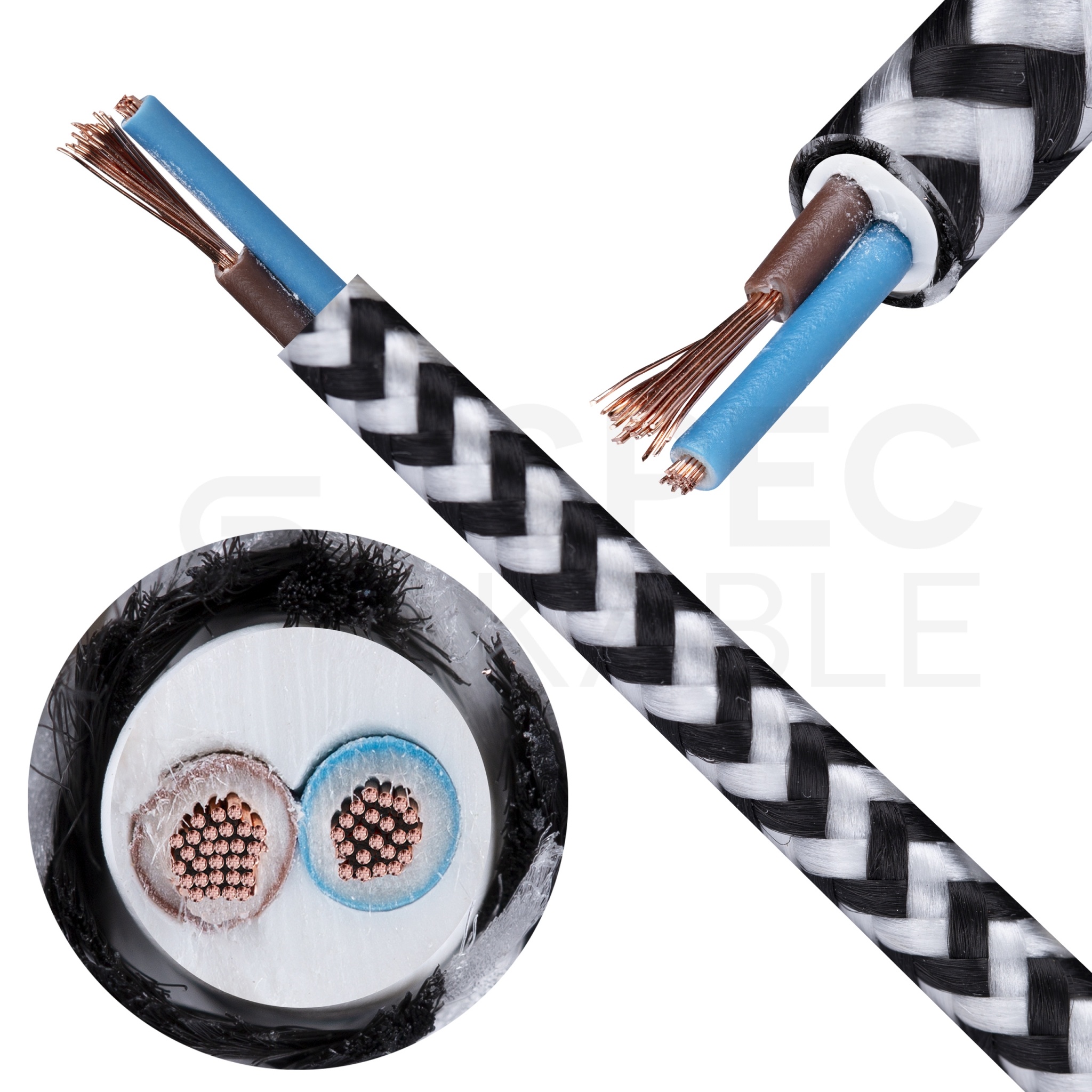 Przewód prądowy H03VV-F / OMY 300V 2x0,75 kabel w oplocie czarno-biały linka