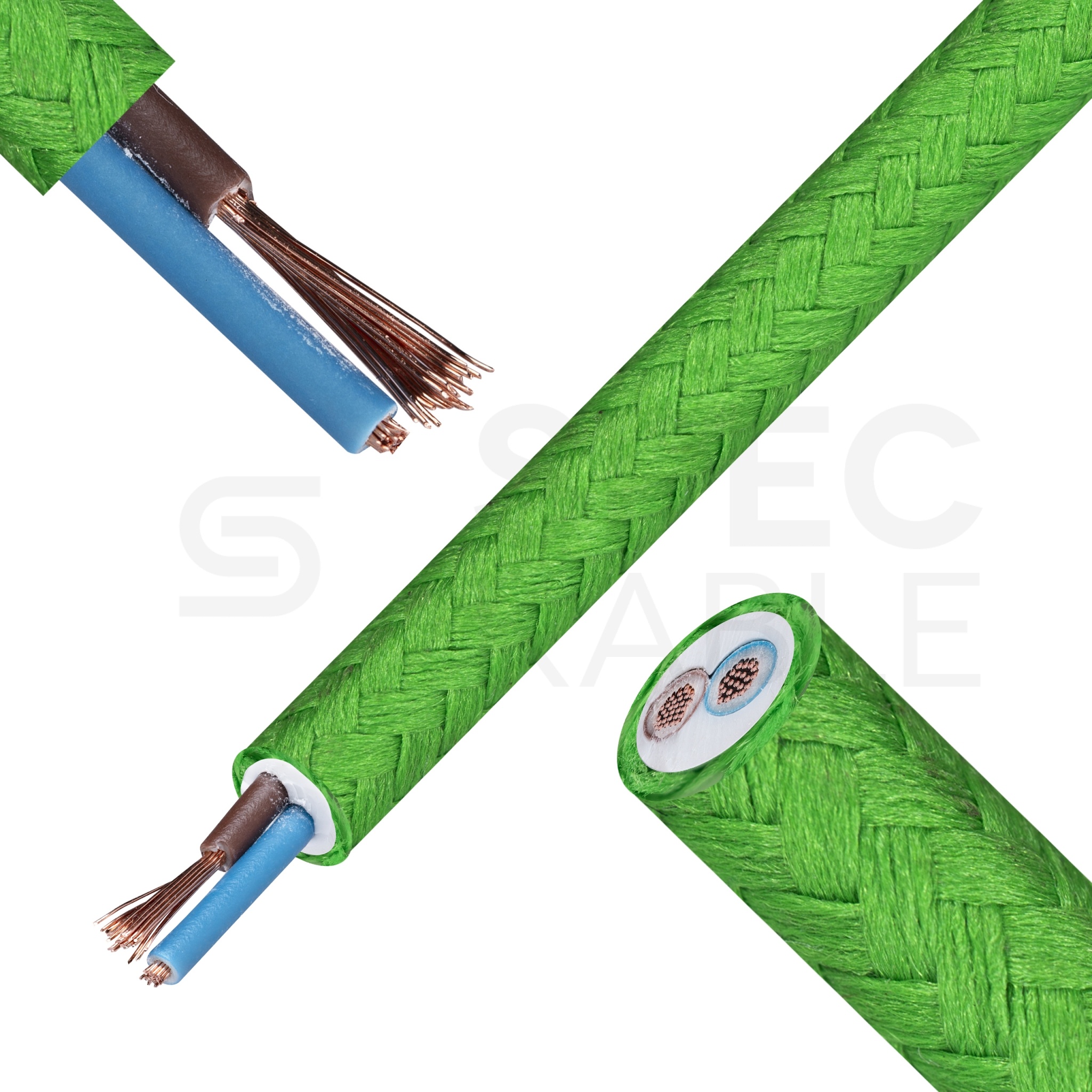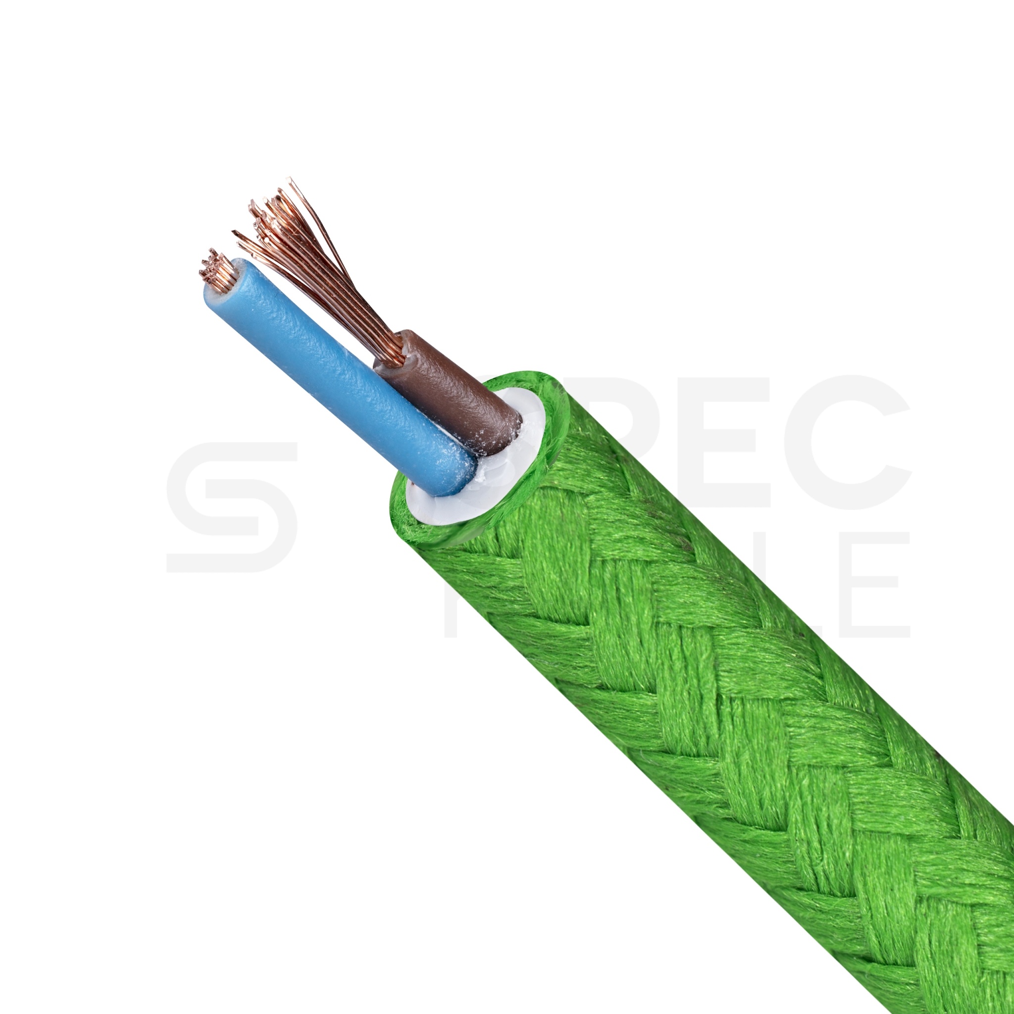 Przewód prądowy H03VV-F / OMY 300V 2x0,75 kabel w oplocie jasnozielony linka