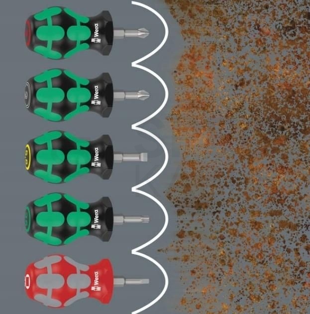Bardzo mały wkrętak do prac w trudno dostępnych miejscach. Powierzchnia trzpienia została poddana specjalnej obróbce zapewniającej wysoką ochronę antykorozyjną oraz optymalne dostosowanie do gniazda śruby.
