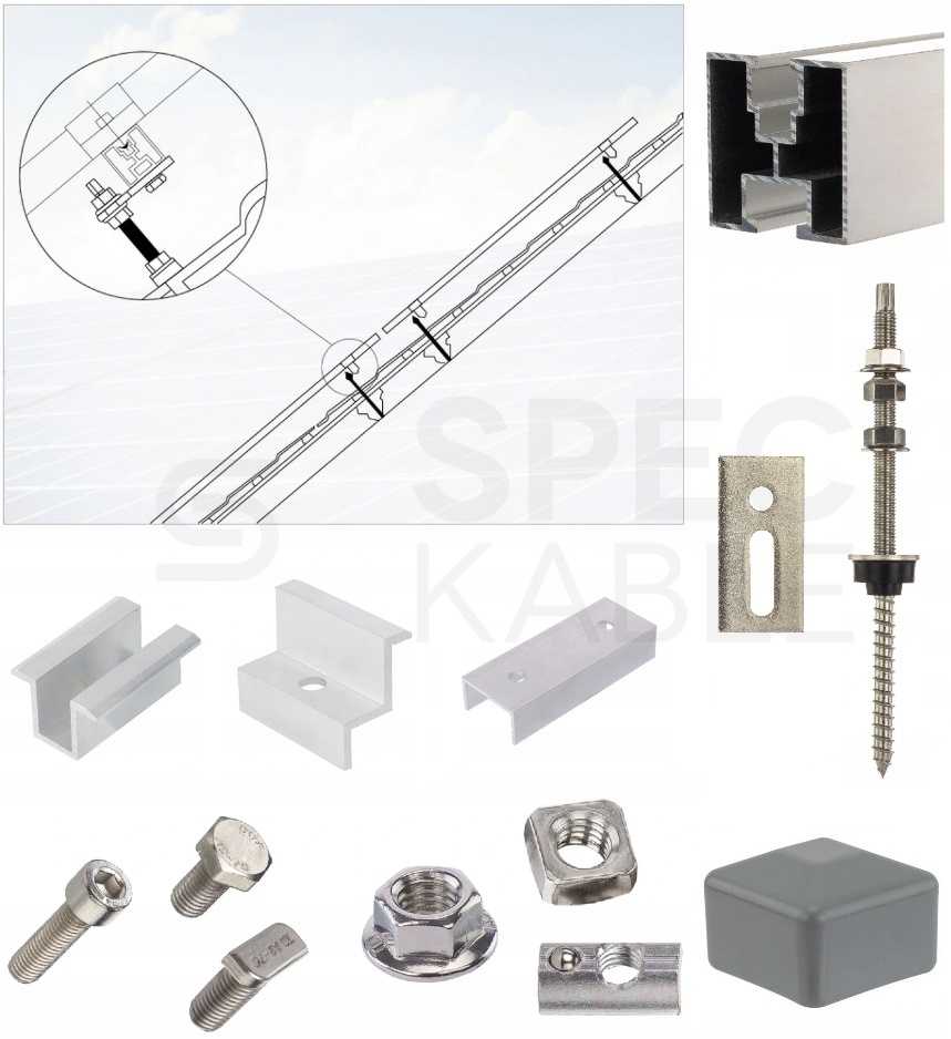 Elementy montażowe do paneli fotowoltaicznych różnią się w zależności od dachu, na którym ma znaleźć się konstrukcja. Ponadto, w przypadku dachów skośnych, elementy dobiera się również do rodzaju pokrycia dachowego.