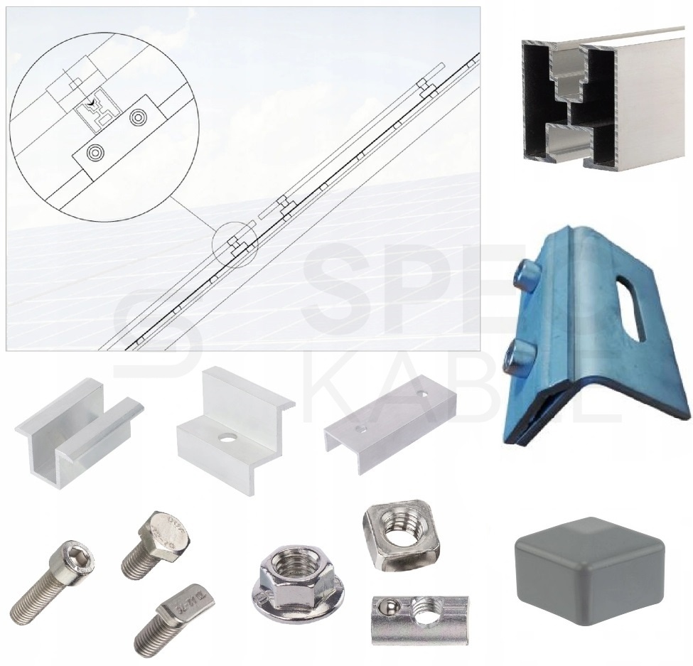Elementy montażowe do paneli fotowoltaicznych różnią się w zależności od dachu, na którym ma znaleźć się konstrukcja. Ponadto, w przypadku dachów skośnych, elementy dobiera się również do rodzaju pokrycia dachowego.