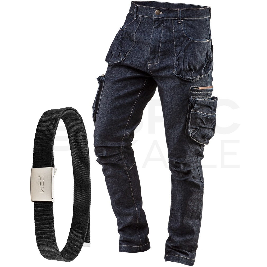 Długie spodnie monterskie, robocze 5-kieszeniowe DENIM jeansowe rozmiar M/50 + pasek NEO 81-229-M + 81-900