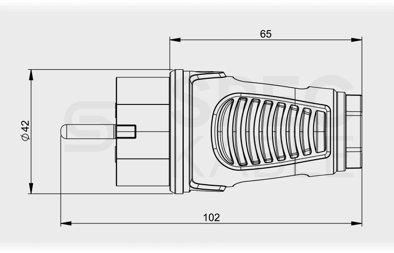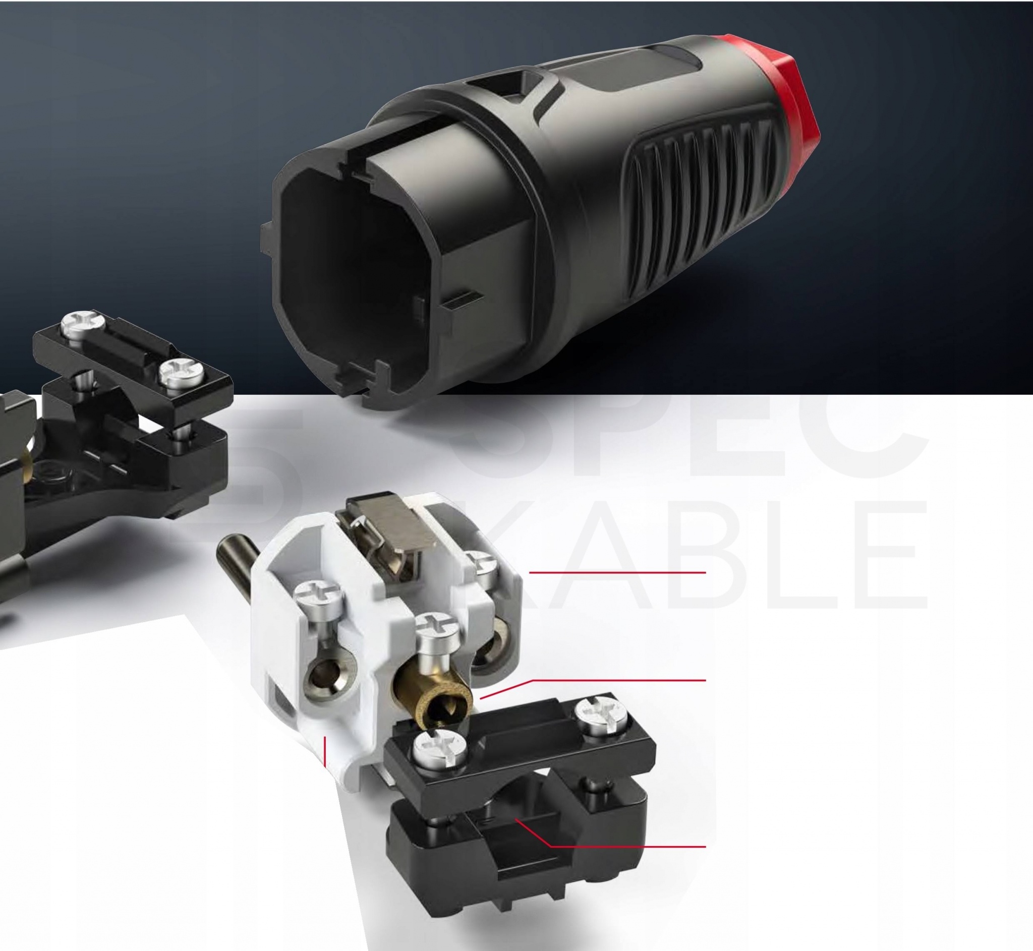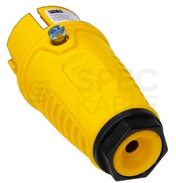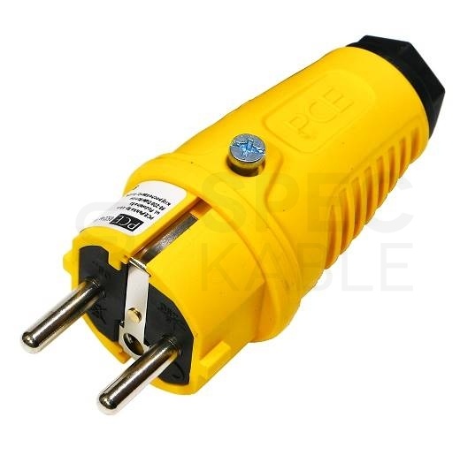 Wytrzymały i zapewniający ochronę gumowy wtyk prądowy przenośny, przeznaczony do montażu na kablu. Stopień szczelności: IP54 (pyłoszczelne i bryzgoszczelne).