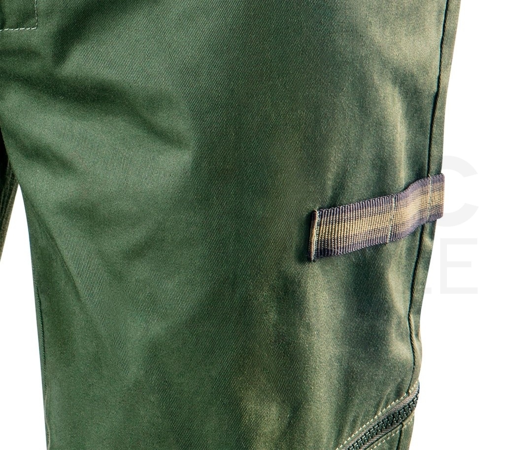 Profilowane kolana z przednim panelem wzmocnionym zaszewkami oraz pojemne i wytrzymałe kieszenie znacznie podnoszą komfort pracy. Wewnętrzna regulacja obwodu w pasie zapewnia łatwiejsze dopasowanie rozmiaru. Spodnie robocze wyróżnia modny oliwkowy kolor, a miejski krój pozwala na użytkowanie produktu również poza pracą. Gwarantem jakości jest certyfikat europejski oraz wykonanie zgodne z normą EN ISO 13688:2013.