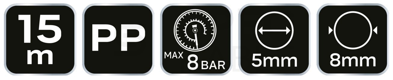 Przewód ciśnieniowy spiralny NEO o długości 15m wykonana z wytrzymałego polietylenu.