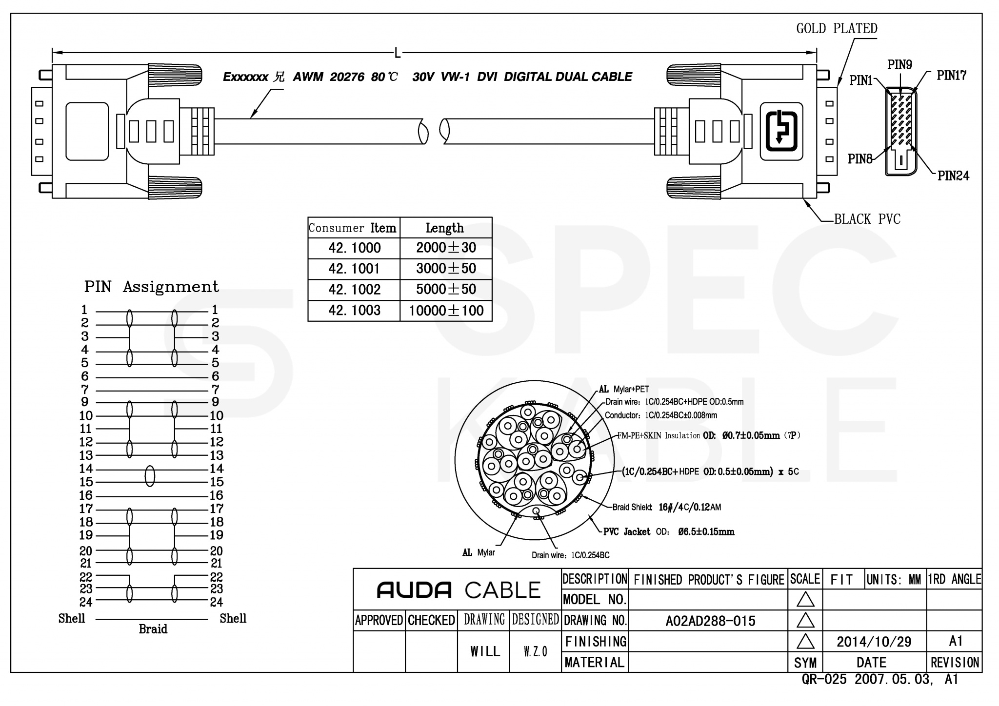 Wysokiej jakości przewód połączeniowy DVI/DVI z serii AUDA Optimum. Przeznaczony do cyfrowego połączenia karty graficznej komputera z monitorem, telewizorem, czy projektorem oraz wszelkich urządzeń multimedialnych wyposażonych w złącze DVI. Przewód wspiera połączenia typu Dual-Link.