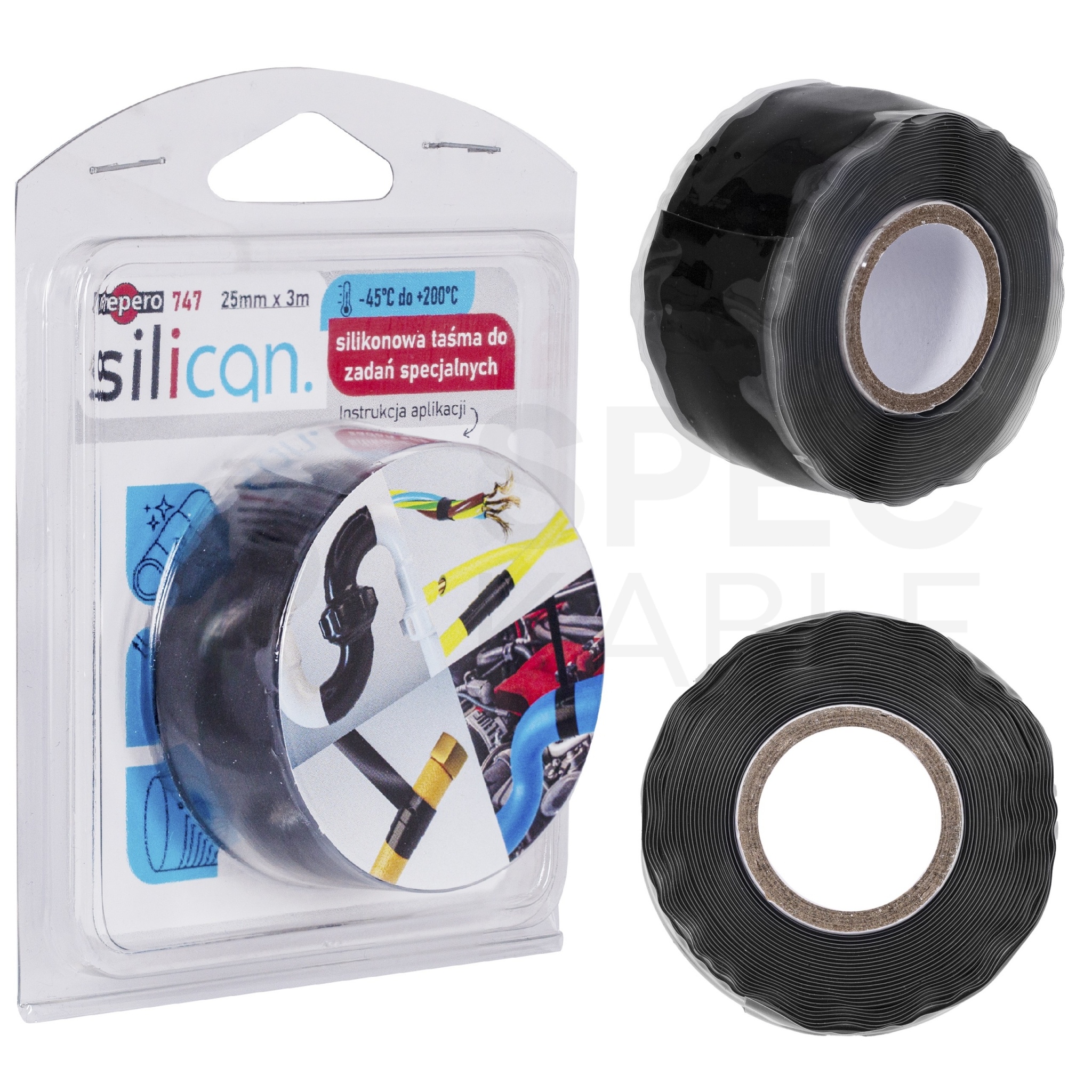 Taśma silikonowa samowulkanizująca Repero 747 Silican to wszechstronna taśma przeznaczona do szybkiego uszczelniania i napraw instalacji wodnych, kanalizacyjnych oraz elektrycznych. Doskonale sprawdza się przy izolacji przewodów, naprawach instalacji sprężonego powietrza i chłodniczych, a także w ochronie antykorozyjnej rur. Dzięki samowulkanizującym właściwościom tworzy trwałą, elastyczną i wodoszczelną powłokę bez użycia kleju