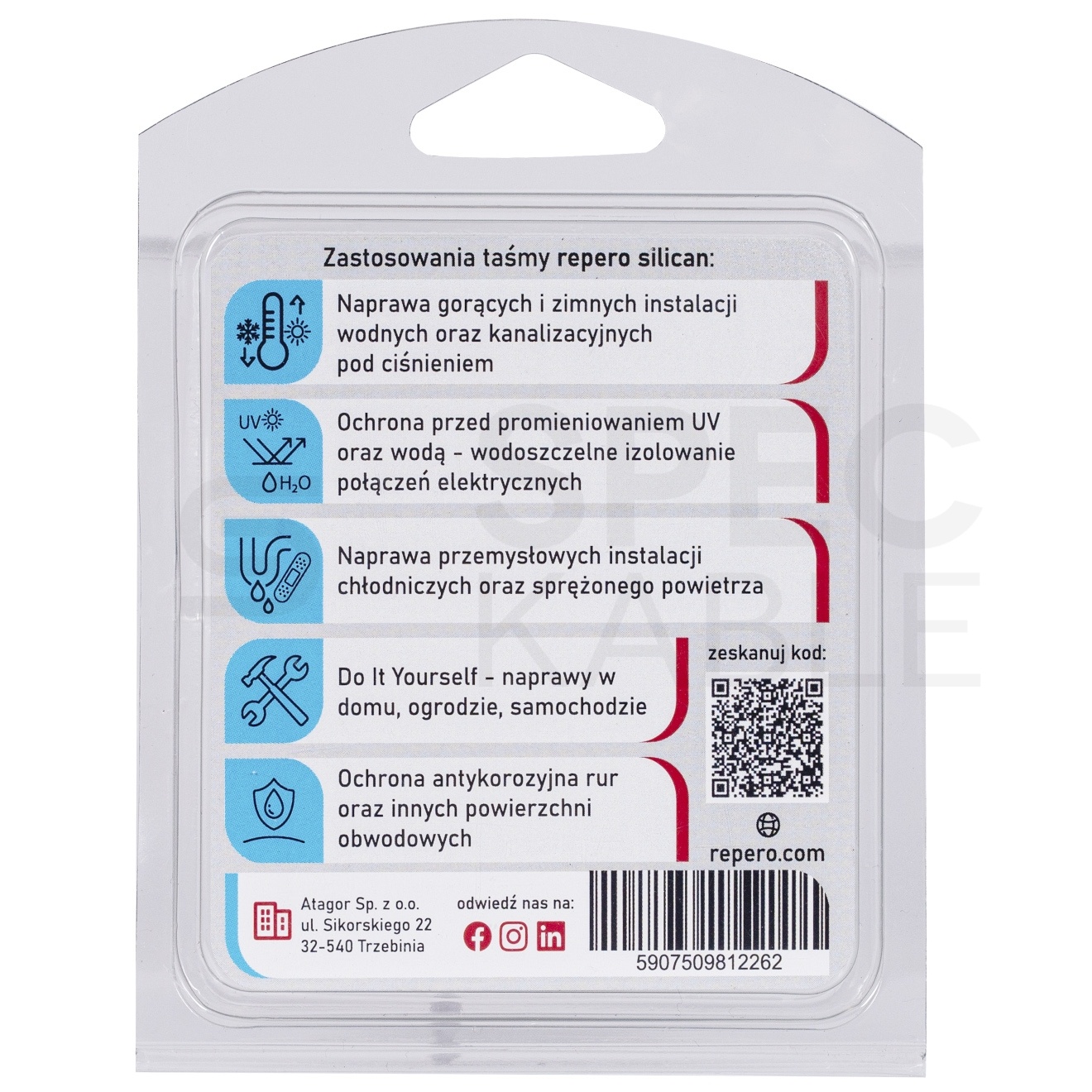 Taśma silikonowa samowulkanizująca Repero 747 SILICAN przeznaczona jest do szybkiego uszczelniania i napraw gorących oraz zimnych instalacji wodnych pod ciśnieniem, a także systemów kanalizacyjnych.