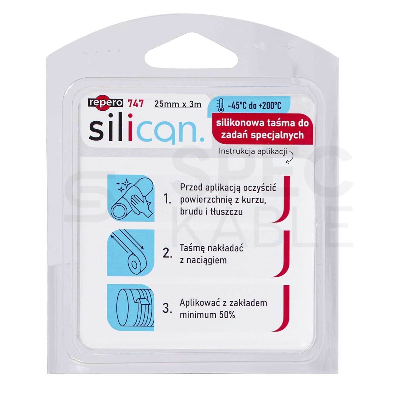Repero 747 Silican oferuje liczne zalety: wyjątkową elastyczność, wodoodporność, odporność na promieniowanie UV, bardzo dobrą wytrzymałość mechaniczną i elektryczną (35 kV/mm). Może pracować w szerokim zakresie temperatur od -45°C do +200°C, a chwilowo nawet do +260°C. Jest idealna do stosowania w trudno dostępnych miejscach, zarówno wewnątrz, jak i na zewnątrz, i nie wymaga stosowania kleju — samowulkanizuje się na powierzchni.
