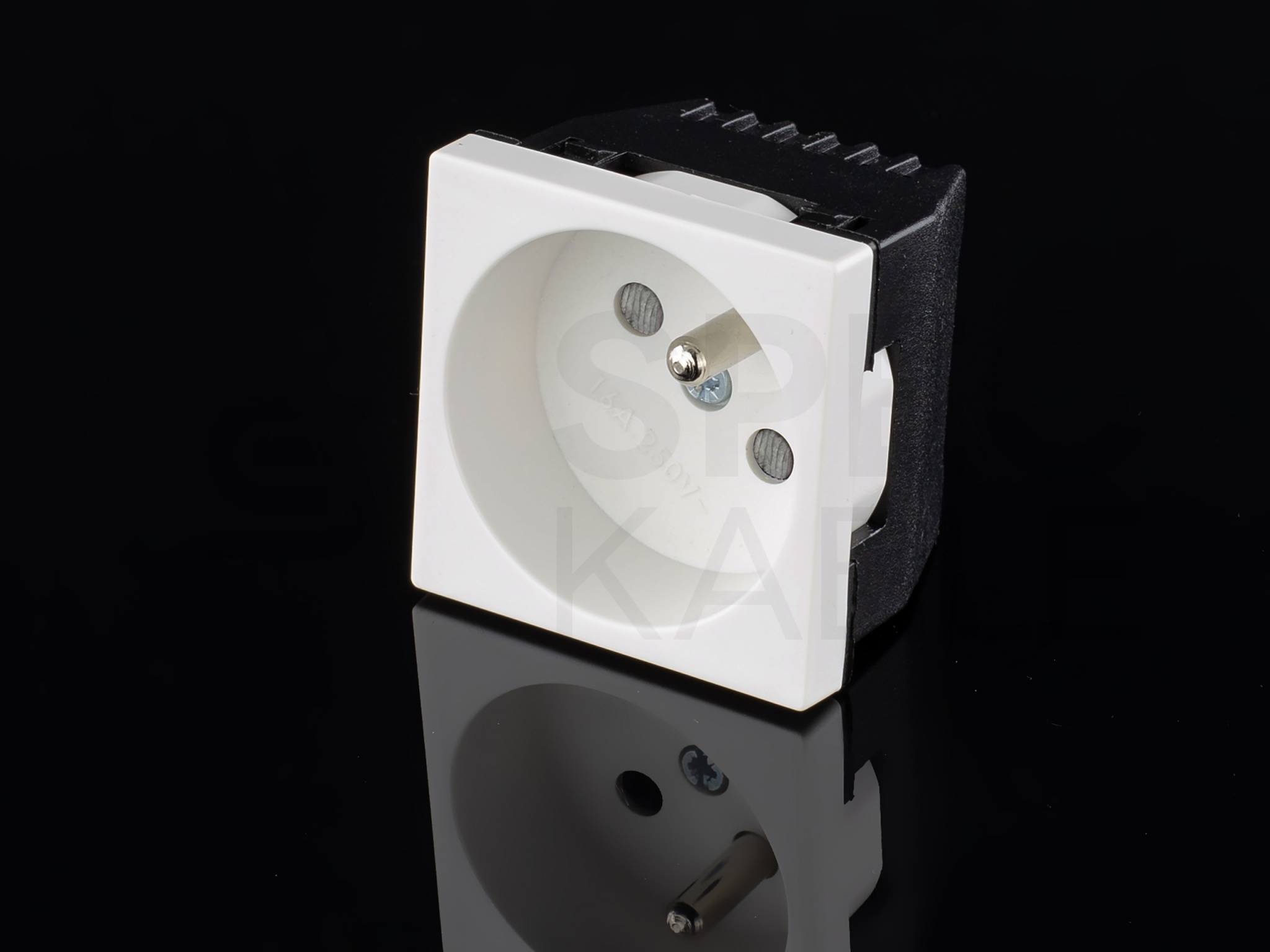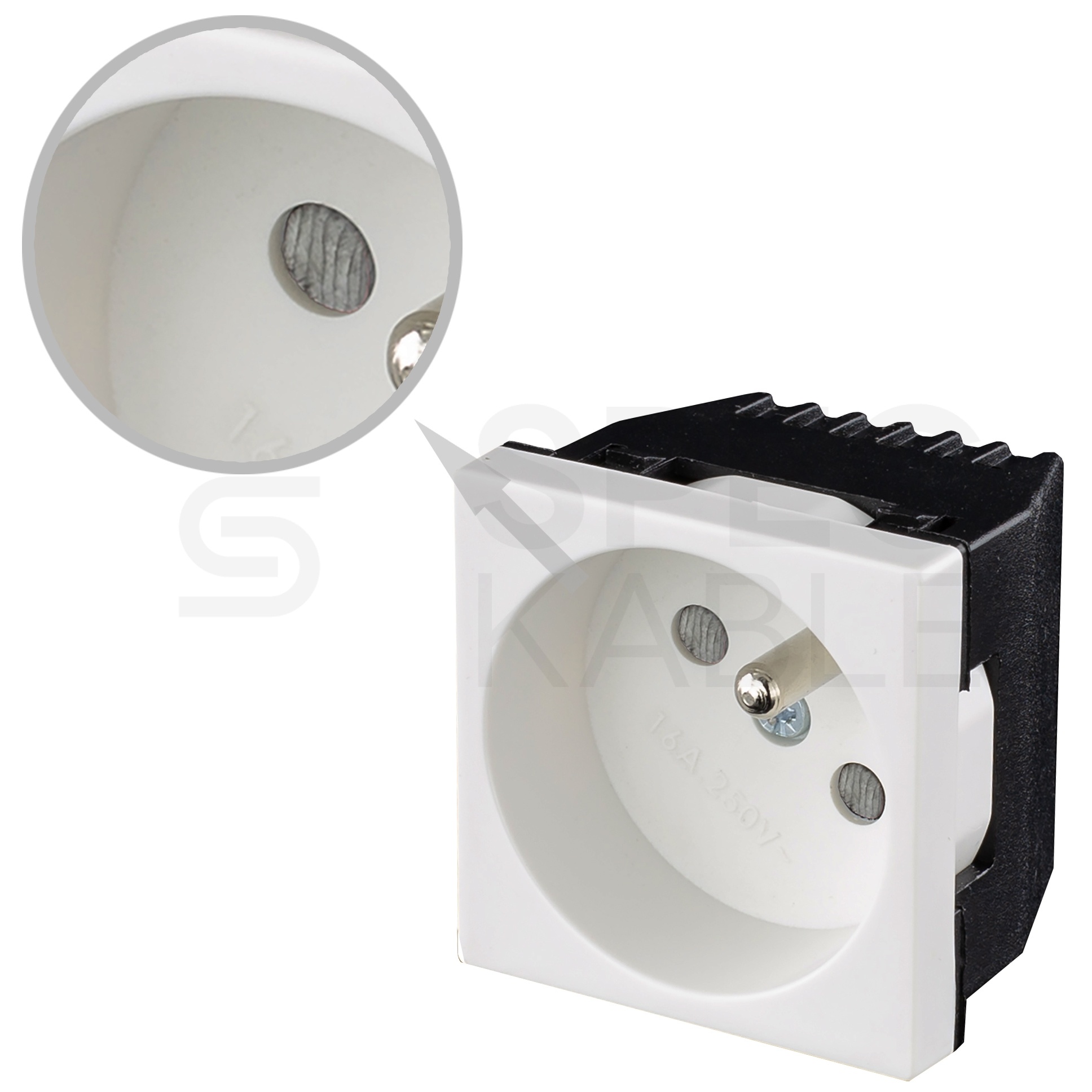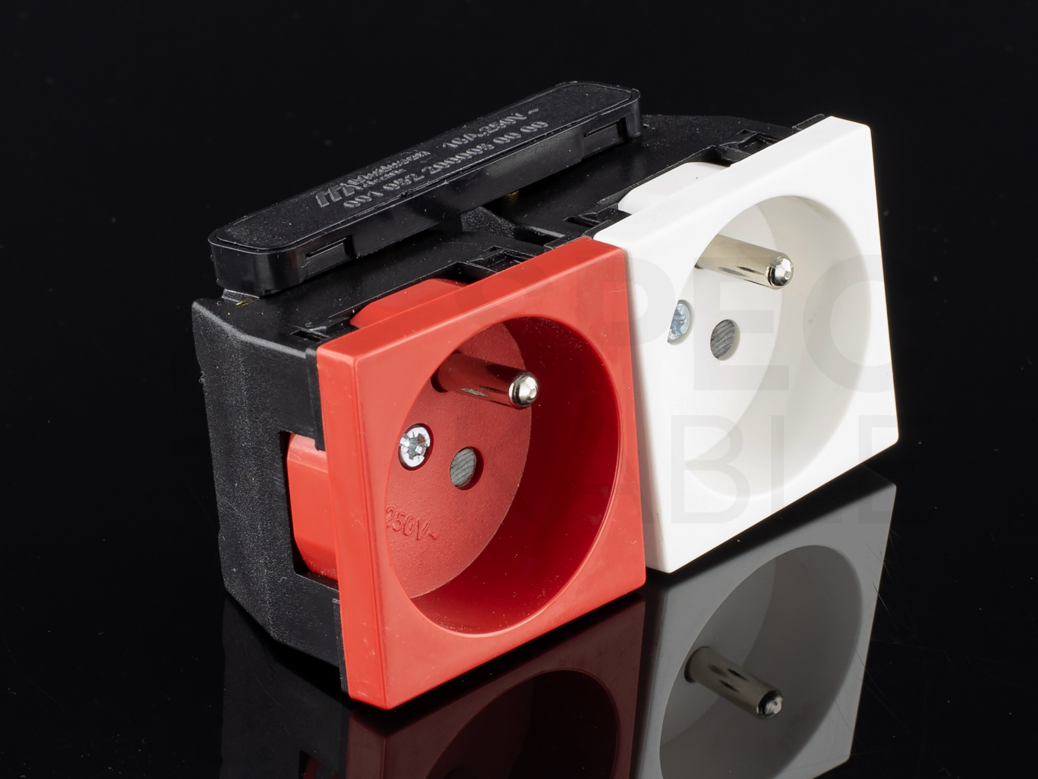 Dwa różne gniazda można połączyć w parę dzięki specjalnemu łącznikowi dostępnemu w naszym sklepie (symbol 25.0527). Pozwala to na łatwe doprowadzenie i montaż jednego przewodu prądowego do połączonych gniazd.