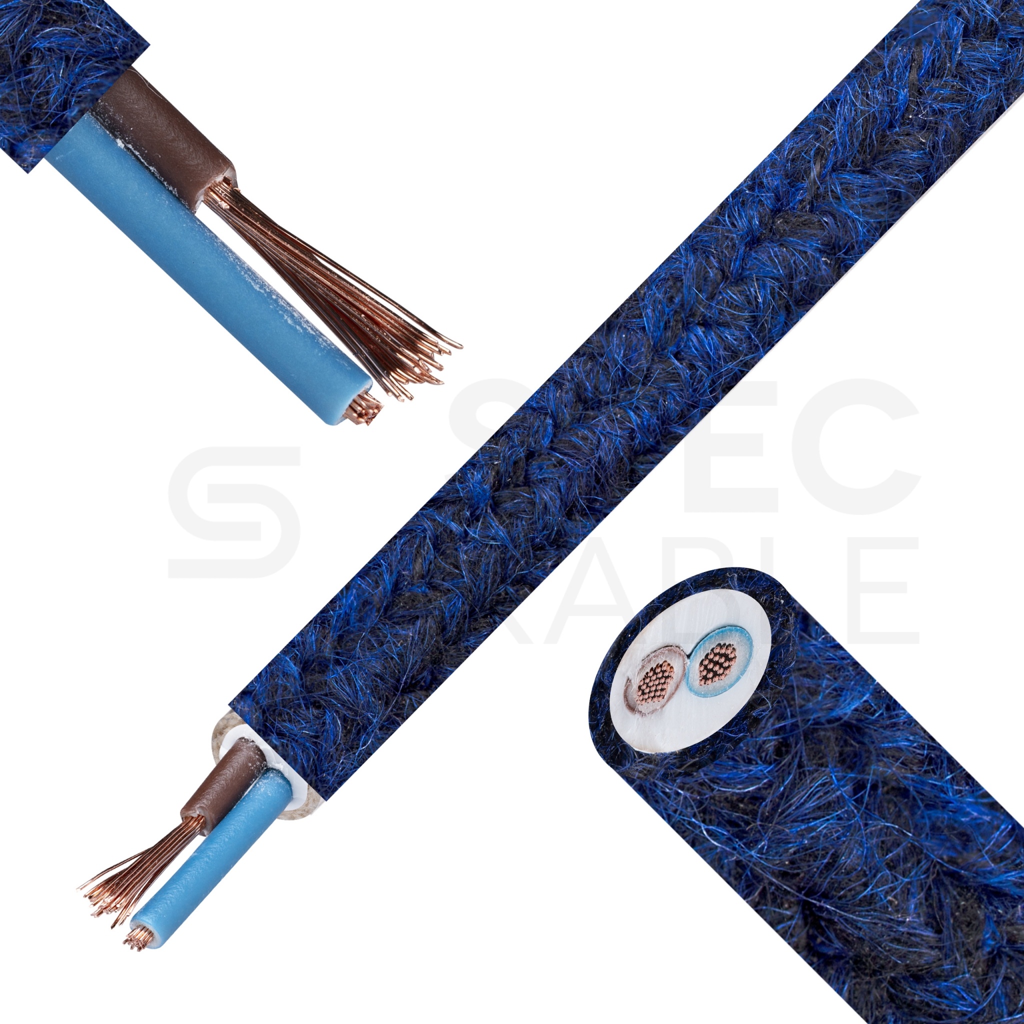Przewód prądowy H03VV-F / OMY 300V 2x0,75 kabel w oplocie granatowy moher linka