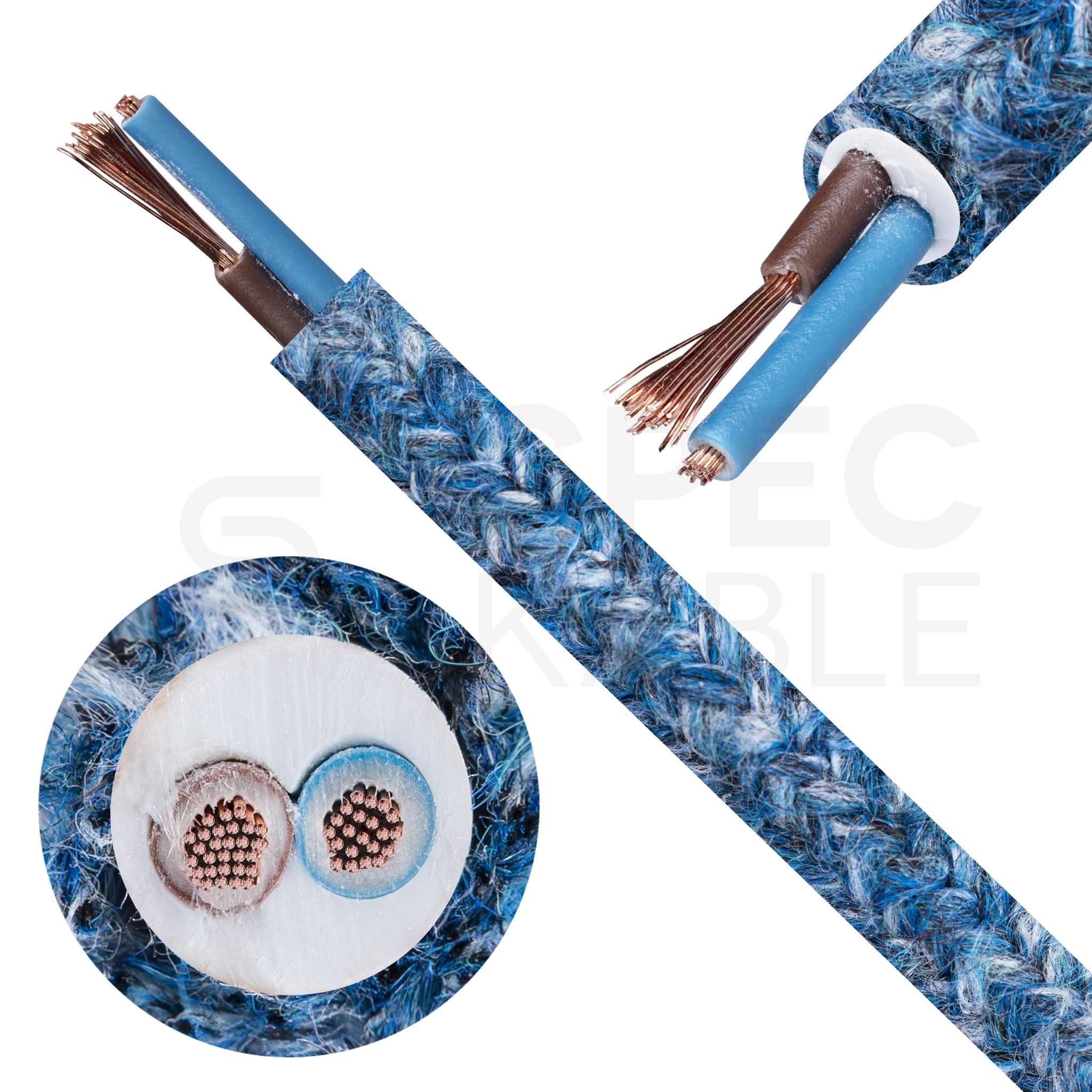 Przewód prądowy H03VV-F / OMY 300V 2x0,75 kabel w oplocie niebieski moher linka