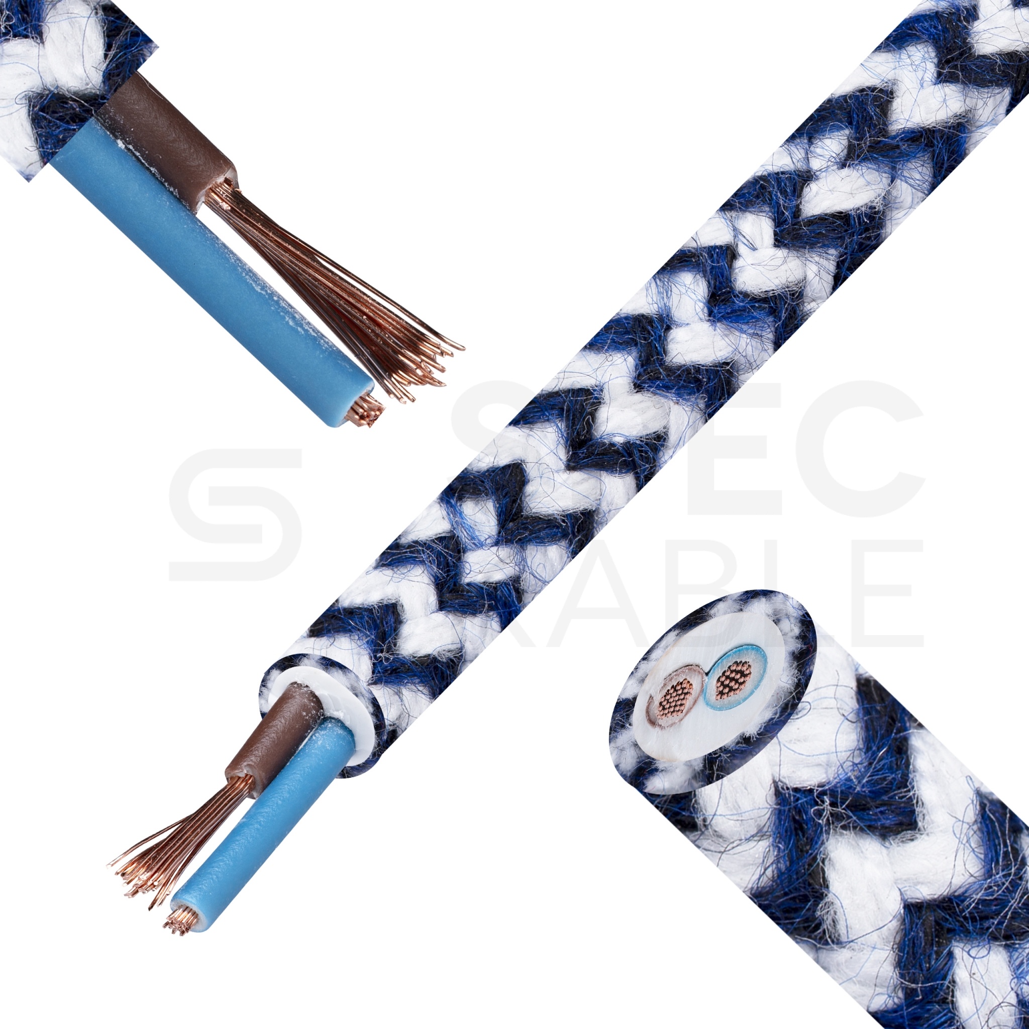 Przewód prądowy H03VV-F / OMY 300V 2x0,75 kabel w oplocie jodełka granatowa linka