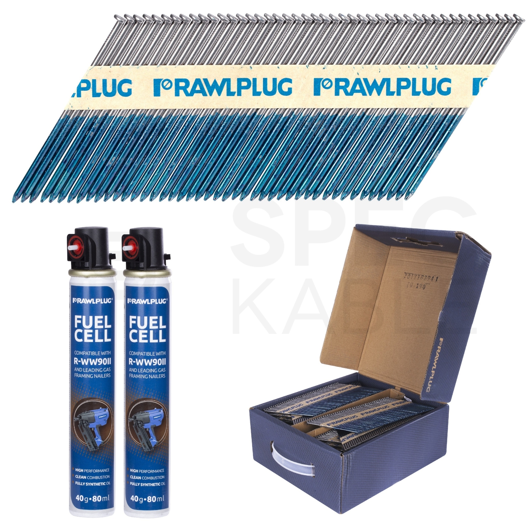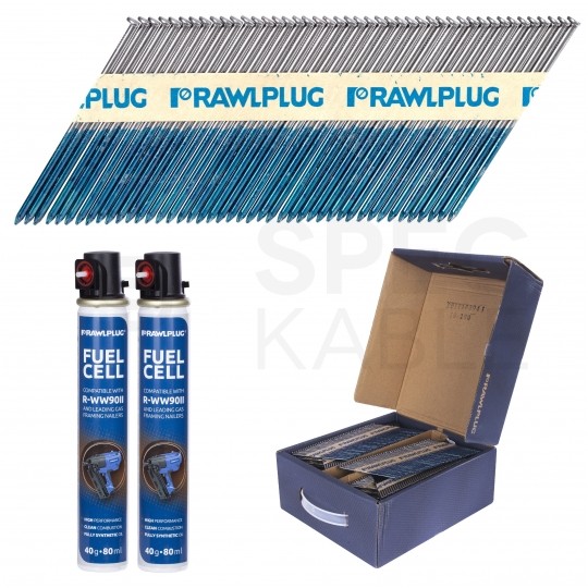 W opakowaniu znajdziemy komplet 2200 gwoździ oraz dodatkowo 2 gazy z zaworami. Całość to praktyczne i wygodne rozwiązanie dla potrzeb montażowych, gwarantujące bardzo wysoką wydajność pracy.
