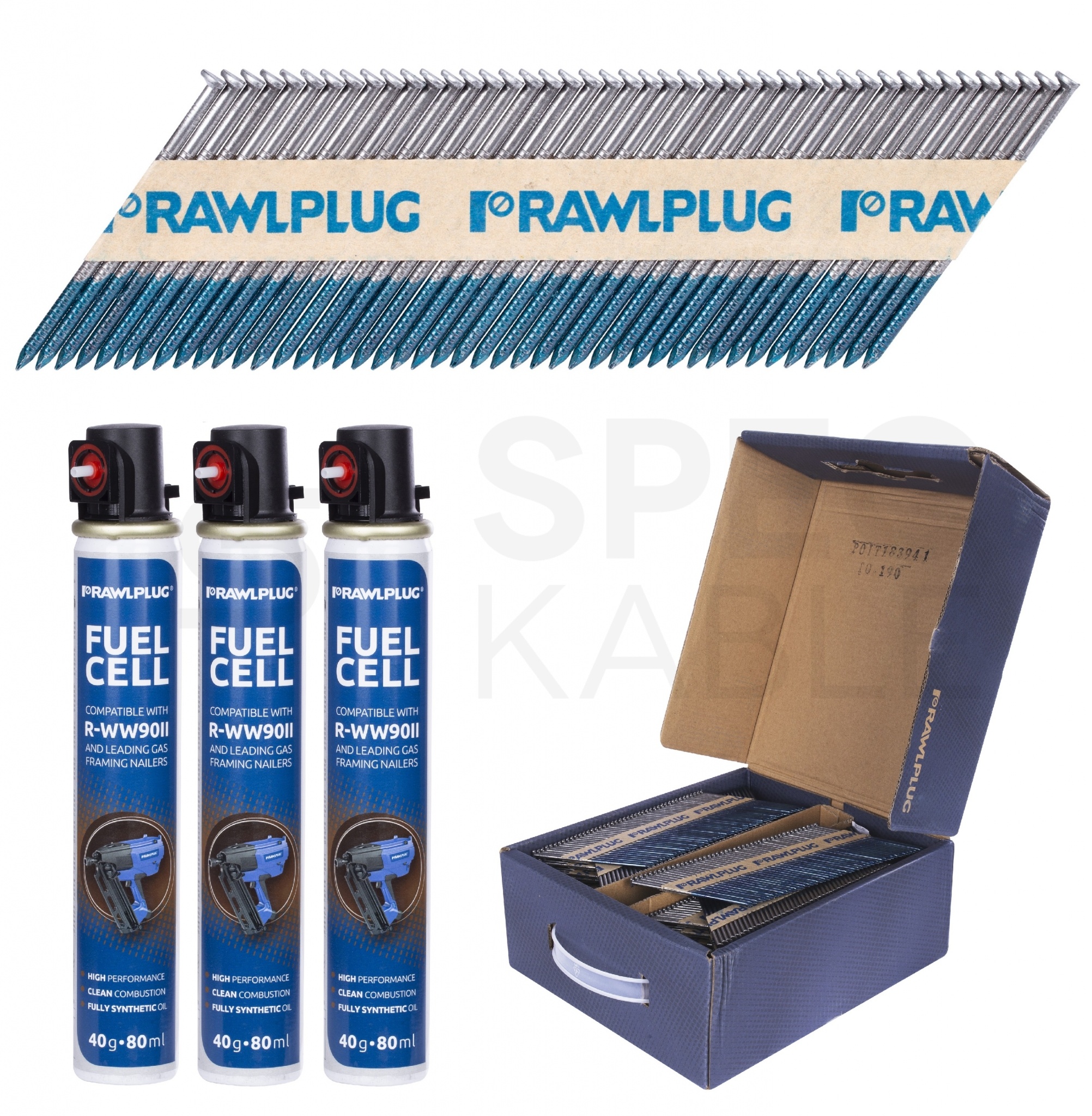 W opakowaniu znajdziemy komplet 3300 gwoździ oraz dodatkowo 3 gazy z zaworami. Całość to praktyczne i wygodne rozwiązanie dla potrzeb montażowych, gwarantujące bardzo wysoką wydajność pracy.