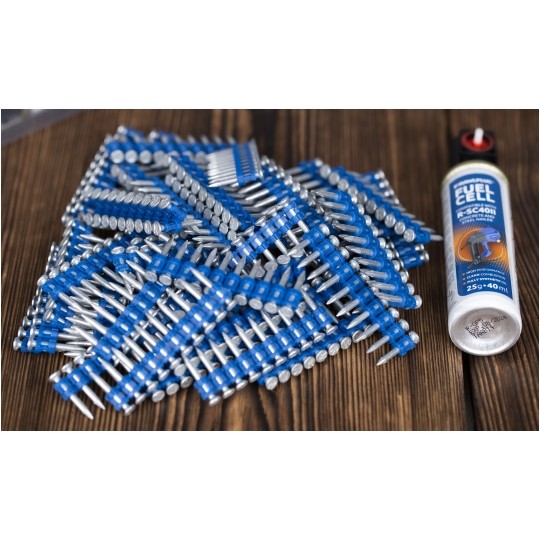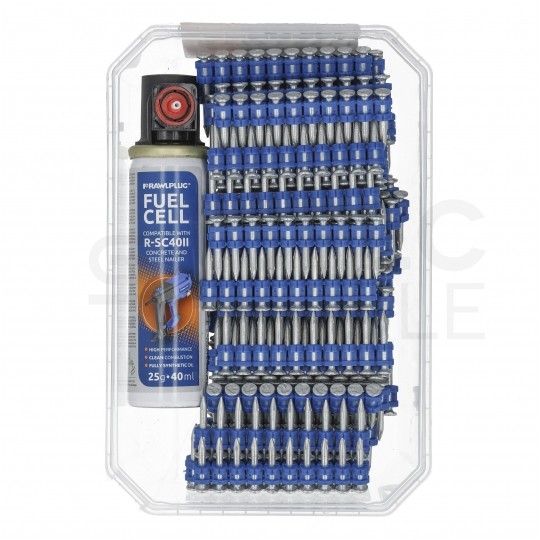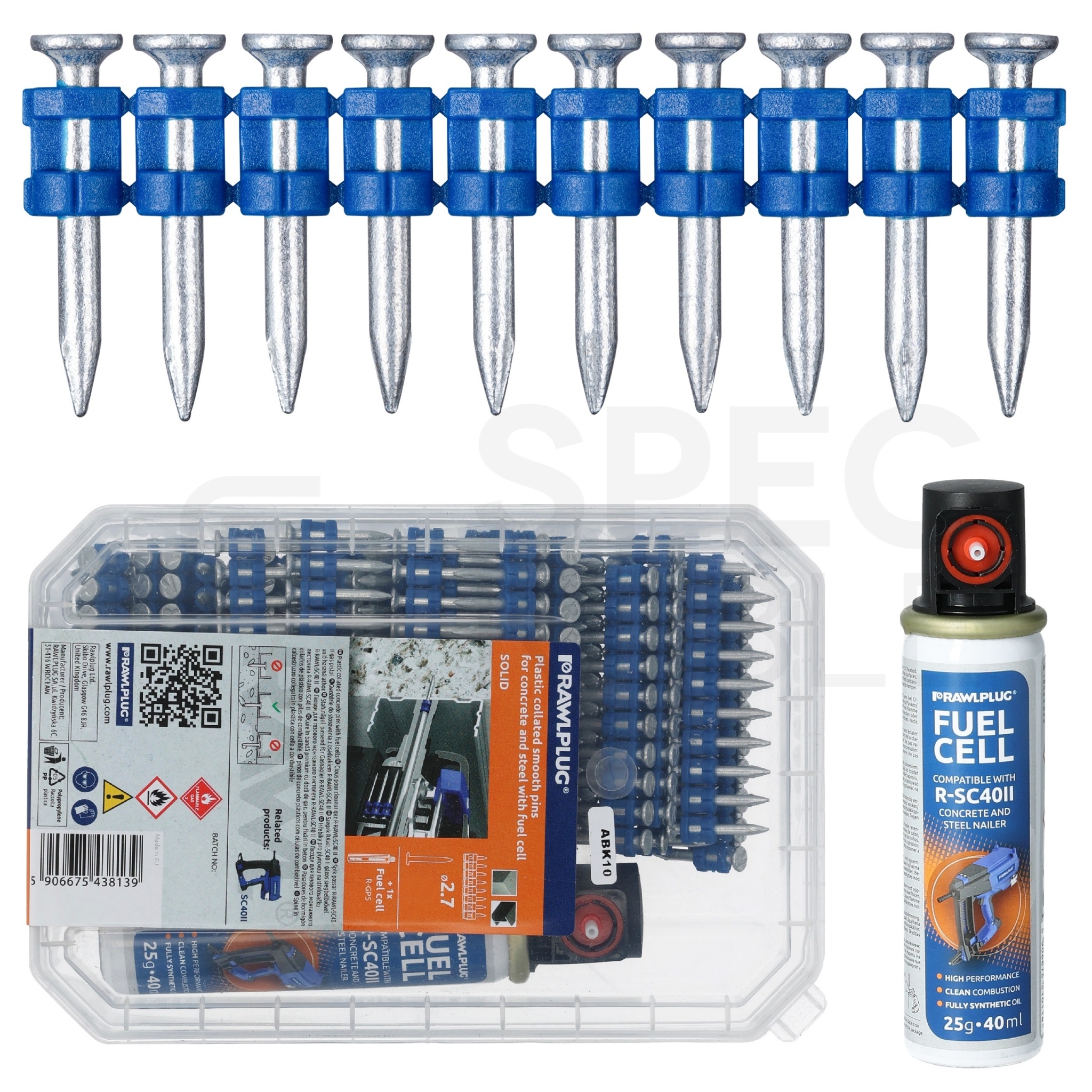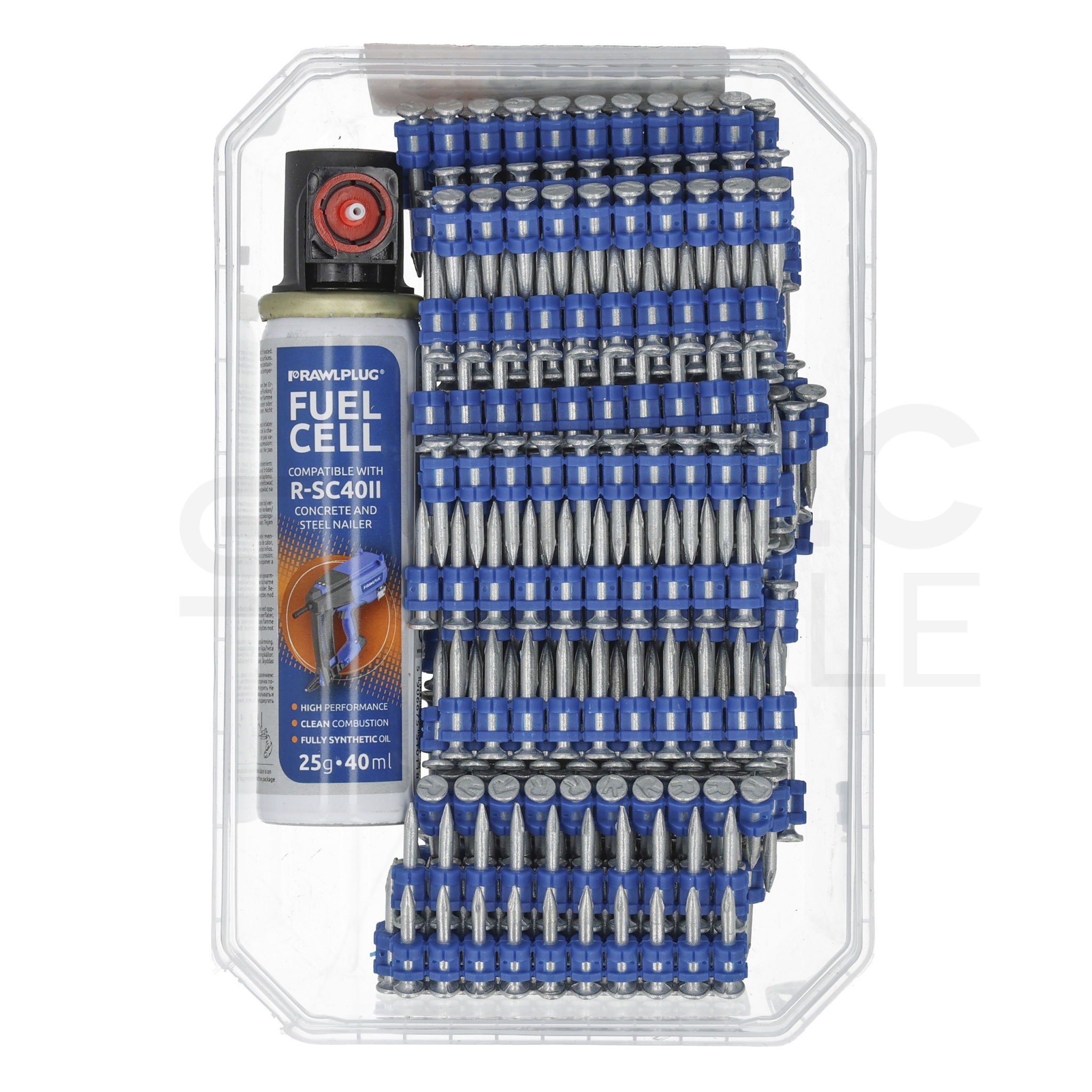 Gwoździe do betonu 2,7x38mm ocynkowane, gładkie łączone plastikiem 500 sztuk + 1x gaz do osadzaka R-SC40II Rawlplug R-KNC-6/38/500
