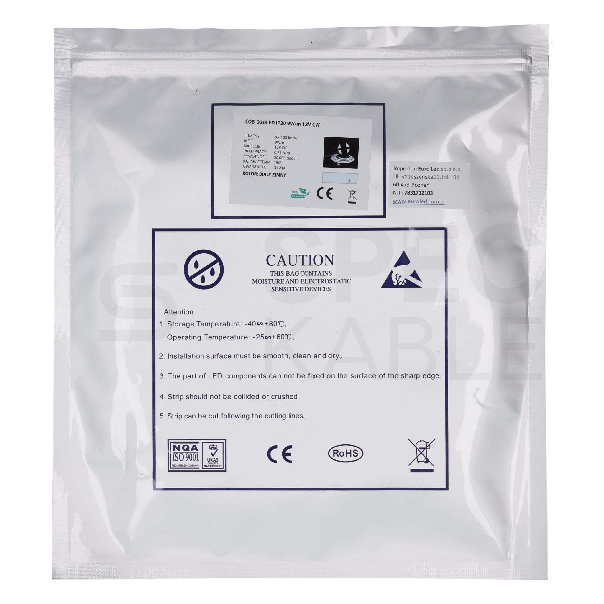 Umieszczenia aż 320 diod na jednym metrze bieżącym taśmy, pozwala uzyskać jednolity strumień intensywnego światła przy niskim zużyciu prądu na poziomie 9 W/m. Brak zauważalnych punktów świetlnych nadaje taśmie wręcz nieograniczone możliwości montażu w każdym, najbardziej nawet skomplikowanym projekcie.